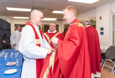 WITH AN EAGER SMILE, FR. BAKER PREPARES HIS VESTMENTS FOR MASS.Fidelity Building Services Group