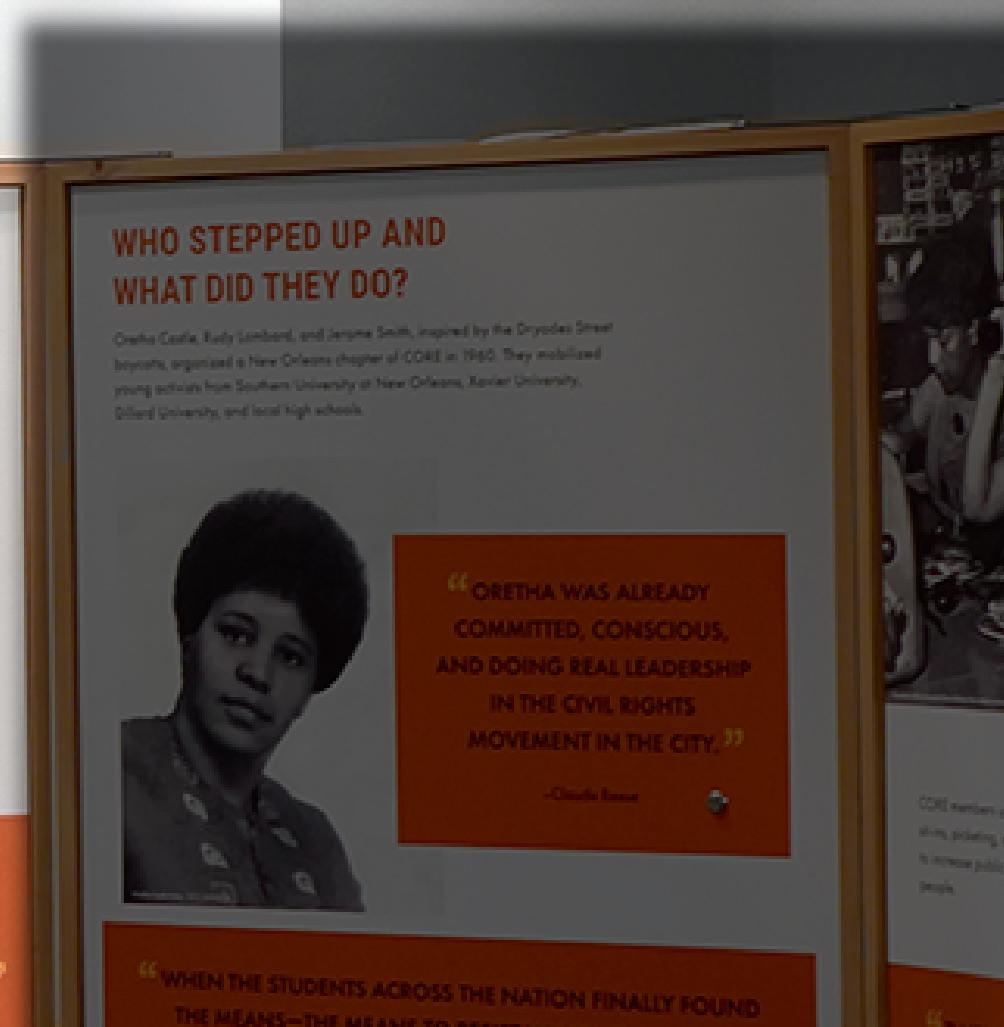 Moore risked his academic career at Southern University by organizing protests to desegregate downtown Baton Rouge lunch counters. Despite his expulsion in 1961, he continued his e orts by serving as eld secretary for the Congress of Racial Equality to help organize Freedom Summer from 1963 to 1965. His e orts transformed him into “a true civil rights legend,” according to the JSRI’s newsletter about the exhibit.