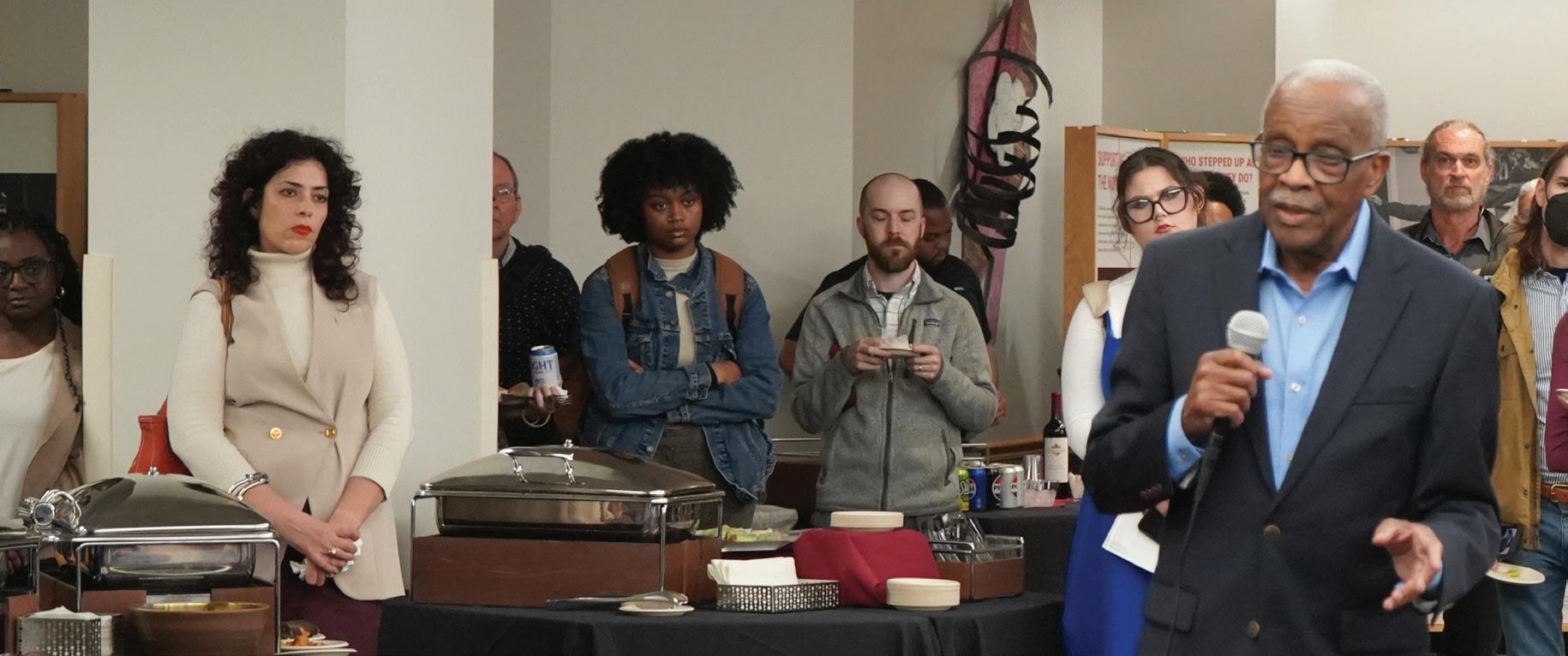 Dr. Ronnie Moore talking to the crowd about his experience during the civil rights movement. Stone Manning/The Maroon.