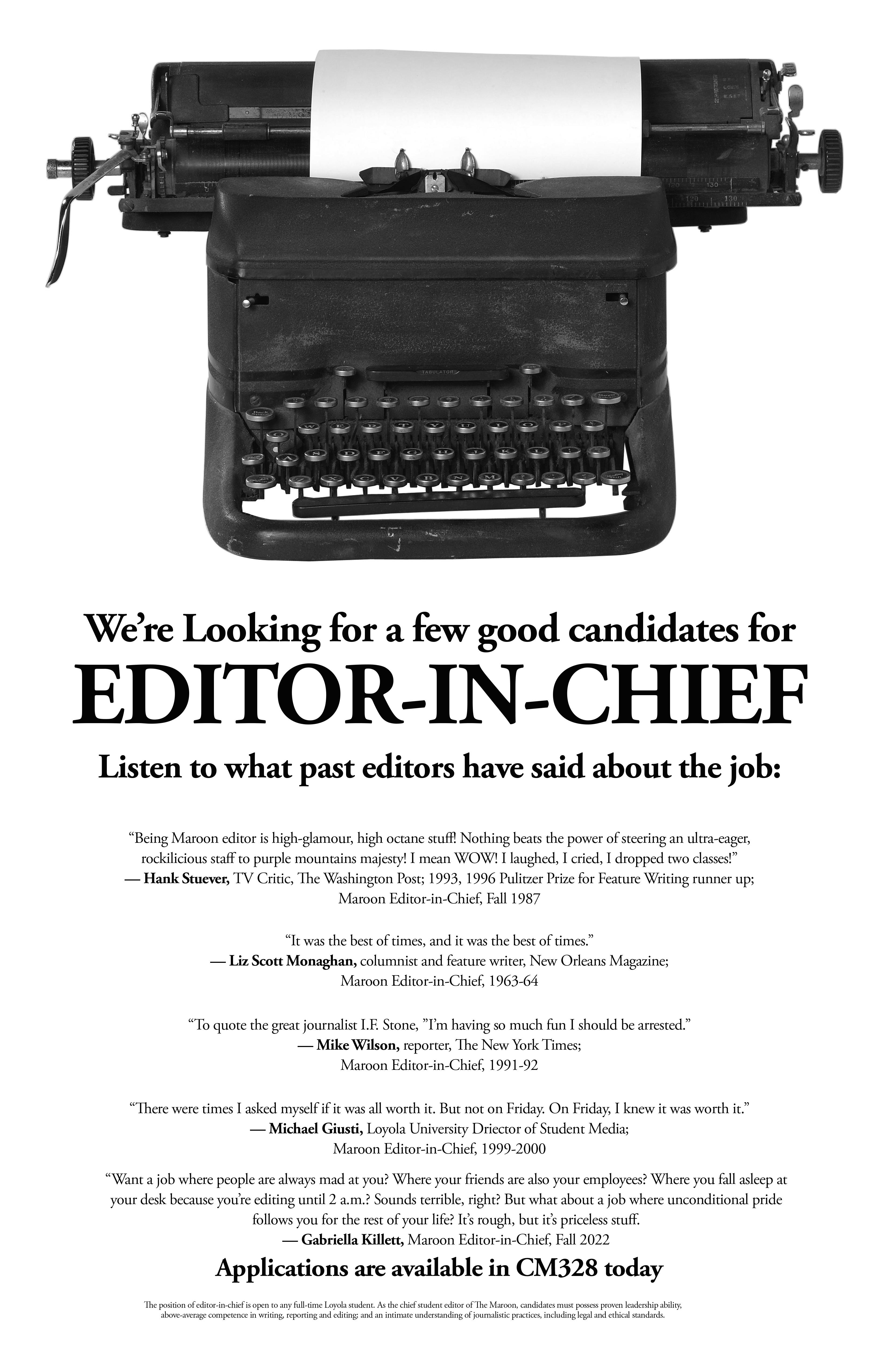 Submissions may also be made online at www.loyolamaroon.com.