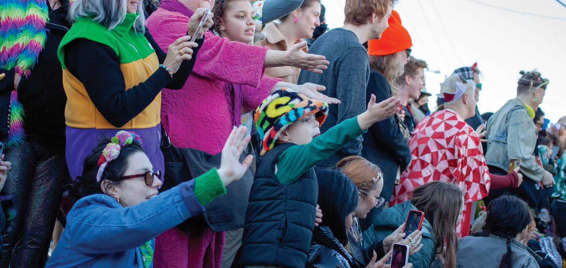 “I’m not catching anything!” he whined. After a few minutes of explaining to him the tried and true Mardi Gras strategy (loud and proud), he put his heart into the parade and received more throws. In my experience, I’ve had a lot of success this way, and the only times I haven’t caught as much was when I wasn’t giving Mardi Gras my all. Muses is a rough one for me. I’ve never gotten a shoe (their signature throw), and in the two times I’ve been to Muses I’ve left with only a few, sad, strings of beads. at being said, both times I’ve been to Muses I was exhausted, and I wasn’t very excited. I can’t be sad over my little beads, because they’re simply a consequence of my inability to fully participate. As the saying goes, Mardi Gras is a marathon, not a sprint. is analogy works well for explaining alleged stingy throws policy, as one cannot expect to complete a marathon without putting in the e ort necessary from start to end. In other words, if you leave a Mardi Gras parade unsatis ed with your loot, take a look at your level of participation and immersion, before blaming the people throwing for your misfortune.