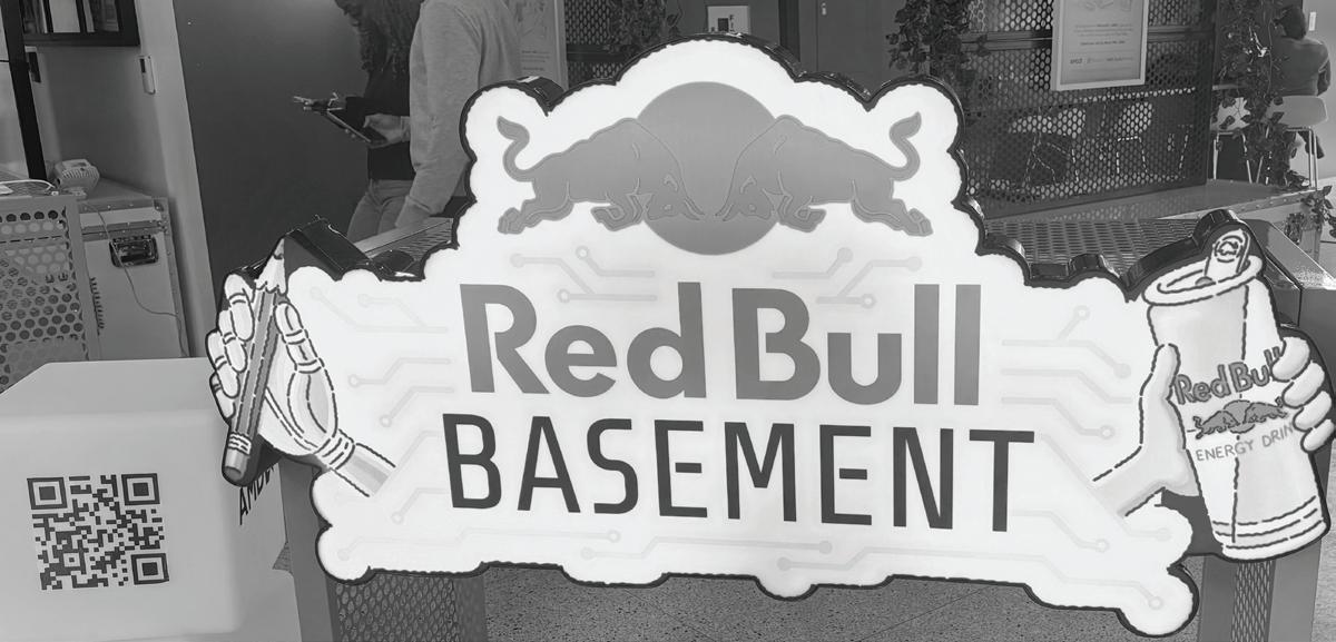 Red Bull's sign promotes Red Bull Basement at New Orleans Entrepreneurship Week. Red Bull Basement is an entrepreneurial program that collects participant ideas. Lily Bordelon/The Maroon.