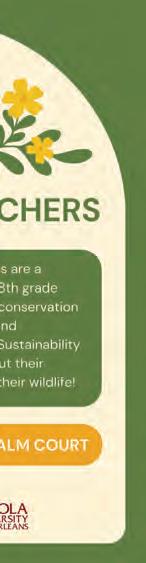 how to create eco-friendly habits in your own dorm. Follow Zach Cesarini into new outdoor activities and hobbies to maintain an active, yet more fun, lifestyle. Discover methods of obtaining and creating sustainable fashion with Isa Castillo for everyday wear and longevity of clothing - with help and advice from Loyola’s very own Costume Shop. Whether from a Loyola or New Orleanian view, this issue of The Wolf exhibits a bird’s eye view into sustainability and environmental efforts through a diverse lens of stories and contributors. Even if you walk away with simply enjoying these stories - or wanting to go out into the world for change - I only hope that we at The Wolf encourage you to take a second look at the natural world around you.