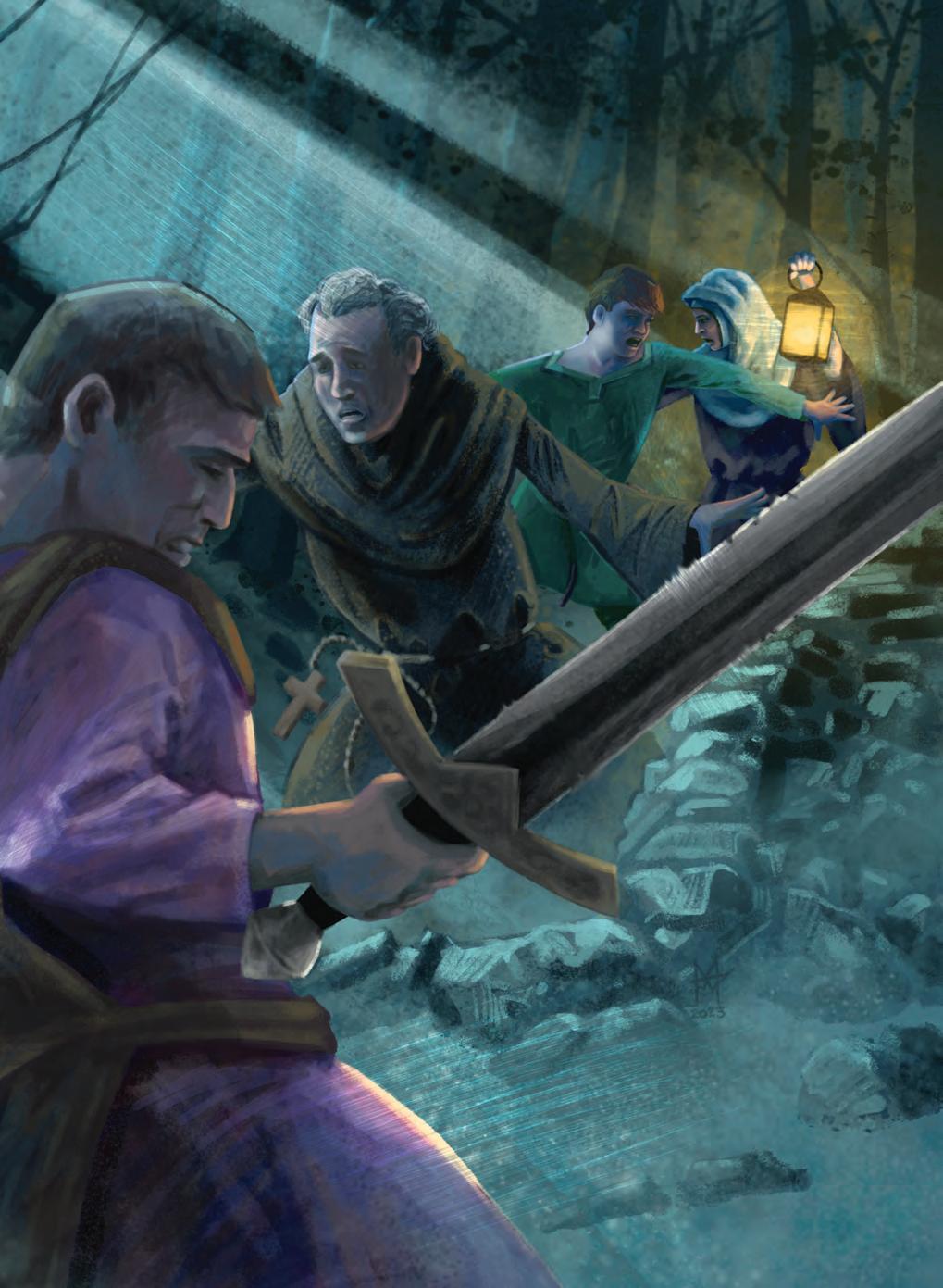 Thecrusaderstillseemedshaken,however,withhiseyesunsettled. “Givemeamomenttocomposemyself.”Withthat,heheadedintothe woodland,asRobertpackedtheirgearandtheothersmountedthe wagon again, their faces lifted to the coolraindrops.