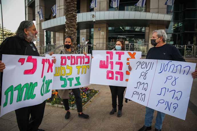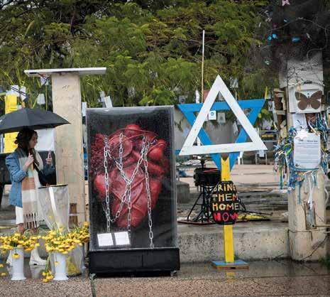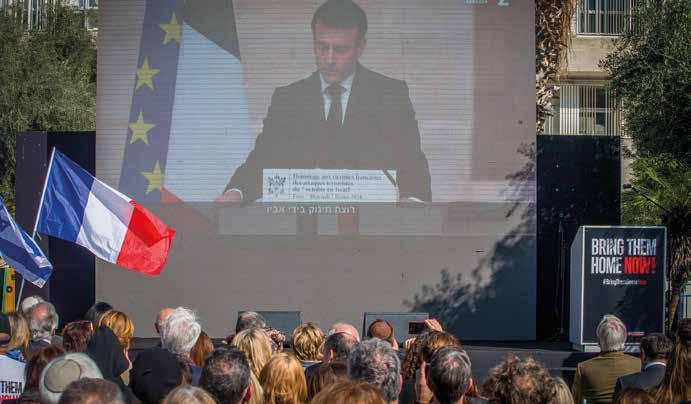 L'allocution du président français Emmanuel Macron aux Invalides le 7 février dernier, diffusée en direct place des otages à Tel Aviv © Flash90