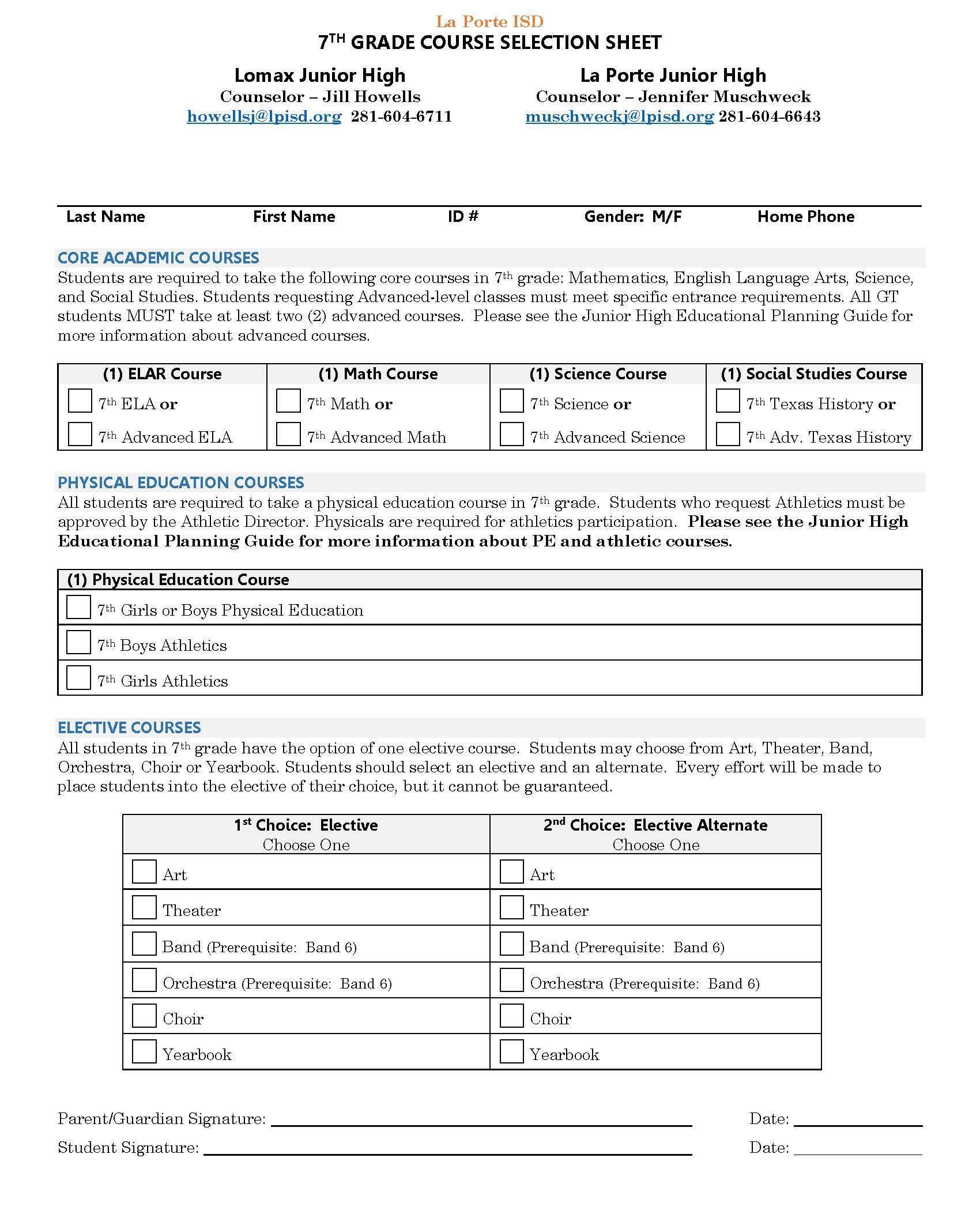 APPENDIX B: 7 TH GRADE COURSE SELECTION SHEET