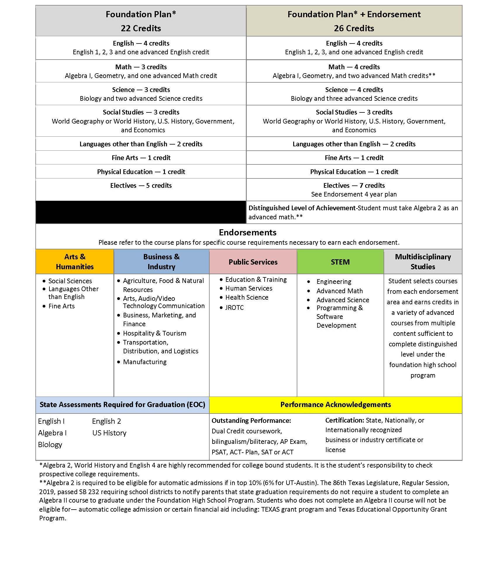 In La Porte ISD, we prepare students for their next step in life, whether that step is admission to college or immediate entrance into the job market after high school graduation. In addition to the curriculum required for all students as part of their foundation education, we offer a variety of courses to best prepare all our students well for the pathways they choose as they learn and grow academically in our district. It is important for students and families to begin college and career readiness conversations as they enter junior high to ensure courses are selected with these plans in mind.