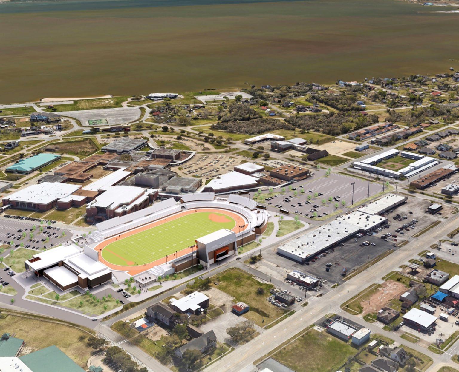 • Enhanced safety & security, compliant with ADA accessibility standards, capable of hosting large UIL events, band contest deck, parking, improved site drainage