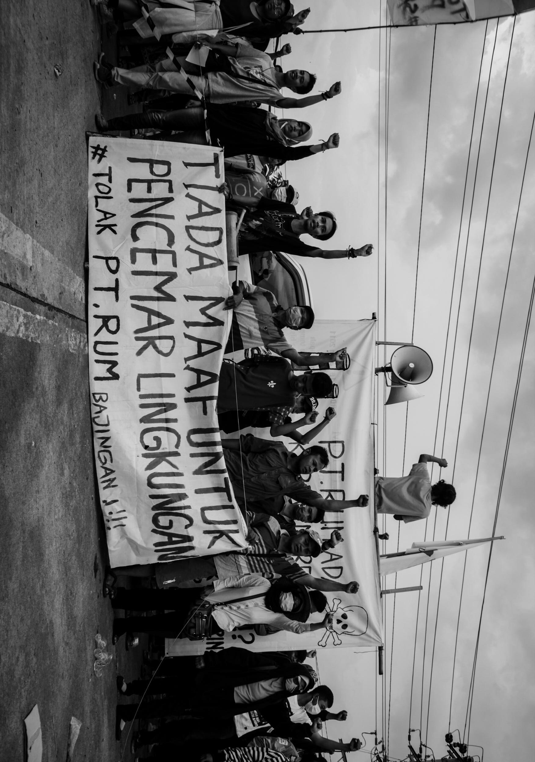 berdemo, namun seiring meluasnya dampak pencemaran, gelombang demo pun semakin besar di bulan Februari 2018. Hingga saat ini, tuntutan warga agar PT RUM menyelesaikan bau busuk yang tak kunjung teratasi masih belum terpenuhi.