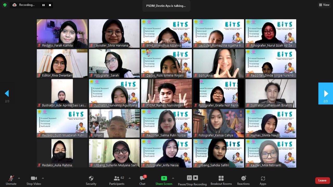 EconoChannel Internal Training Softskills (EITS) merupakan salah satu nonproker PSDM yang bertujuan meningkatkan softskill terkait jurnalistik bagi internal EconoChannel dengan tema yang berbeda setiap penyelenggaraannya.