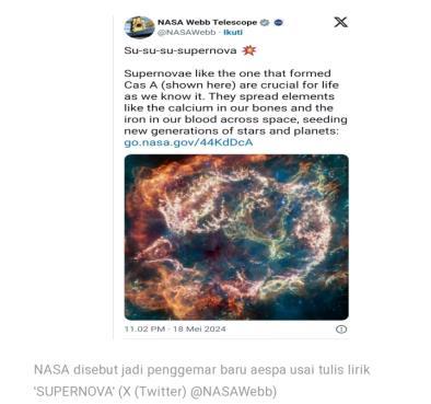 NASA lewat postingan X akun NASA dengan menggunakan caption lirik SUPERNOVA