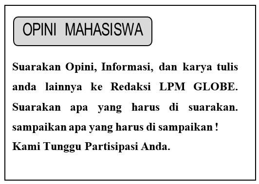 Partisipasi do’a kami harapkan dari segenap civitas akademika Fakultas Geografi Universitas Muhammadiyah Surakarta Semoga penerbitan produk LPM GLOBE kedepannya lebih baik dari segi apapun, sehingga secara konsisten dapat memberikan informasi terkait seputar kampus khususnya lingkungan Fakultas Geografi UMS. Maka dari itu kami memohon kritik dan saran untuk menjadi bahan evaluasi dari kami selama berproses.
