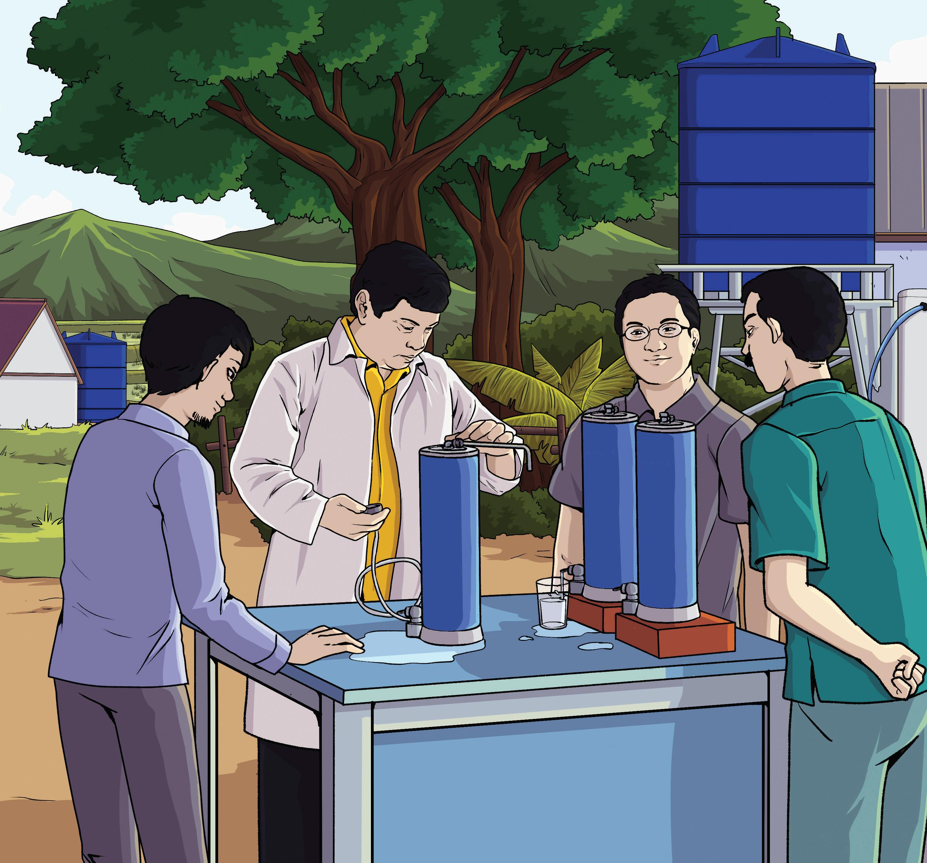 Ilustrasi pemanfaatan alat penjernih berbasis membran IGW Home Ultrafilter menggunakan teknologi ultrafiltrasi untuk penyediaan air bersih bagi daerah yang mengalami kekeringan atau bencana.