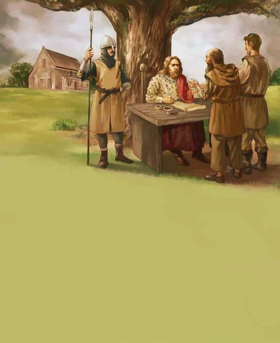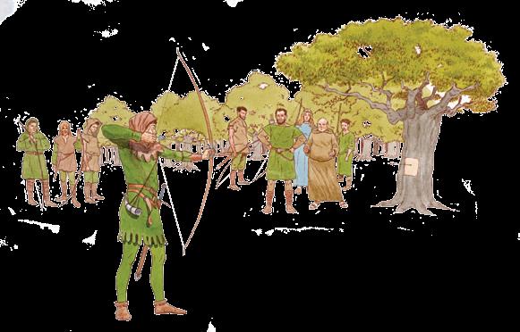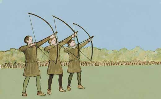Your family farms land for the lord. You work from sunrise to sunset tending to the crops and animals. However, you are not only a freeman, you are also a young warrior, or at least you hope to be. You are the son, grandson, and nephew of skillful archers. You, too, are training to be an archer, or longbowman. It is the law in England that you practice this skill. You have been learning the skills needed to be an archer since you learned how to walk. Your first longbow and set of arrows were carved from the wood of a yew tree. Your older brother gave them to you. Your mother made your quiver. At the very first glimmer of light, you run to the training field. You and the other boys your age love to practice hitting the set targets. You love to hear the cries, “Ready your bows! Nock! Mark! Draw! Loose!” Before the sun sets, you return to practice until your target is lost in the darkness. As each day ends, you return home dreaming of becoming the best marksman in all of England.