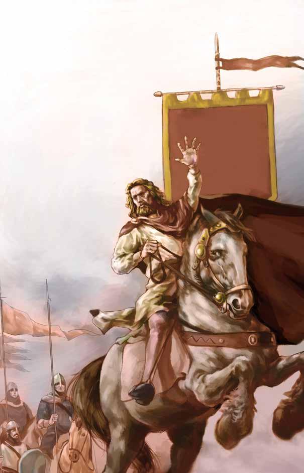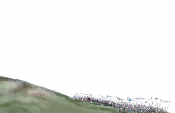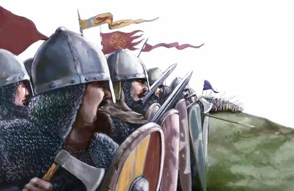 and loyal soldiers had recently marched about 200 miles. They came from the north of England where they had already fought an invading force. Though victorious, these soldiers were tired. the hill, the English soldiers could see that they faced a large, wellequipped Norman army. The Normans, who came from a region of France, had approximately 10,000 men. They had thousands of skilled archers. They also had thousands of foot soldiers and knights who fought on horseback. The English, however, had mostly foot soldiers armed with simple weapons, such as bows and arrows, axes, spears, swords, and daggers.