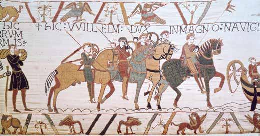 The Bayeux Tapestry is a medieval embroidered cloth that tells the story of the Norman Conquest. The story is told in Latin text and beautiful images that were embroidered onto 231 feet of linen cloth. The Bayeux Tapestry is believed to have been commissioned around the year 1075 CE by a member of William’s family. Much of what we know about the Battle of Hastings is because of this extraordinary tapestry.