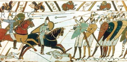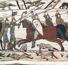 Bayeux Tapestry section showing English foot soldiers and mounted Normans