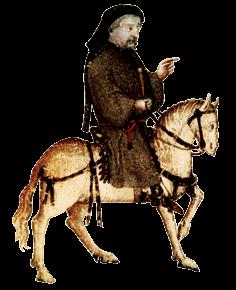 The Canterbury Tales was Chaucer’s last work. In this work, a number of pilgrims travel together from London to the holy shrine of Thomas Becket, in Canterbury. Each pilgrim agrees to tell two tales on the way to Canterbury, and two on the way back to London. Chaucer introduces 29 pilgrims. The characters themselves are from every social class. Many of the tales are humorous, and they provide wonderful insight into life in the Middle Ages. The following translated excerpt is part of the introduction to The Canterbury Tales. The introduction is called the Prologue. In the Prologue, Chaucer introduces the characters who will tell their tales. In this excerpt, you will discover how the journey began. You will also meet a knight, a squire, and a yeoman, or farmer. Alongside this translation, you will also be able to view the original Middle English text. The English language has changed quite a lot since Chaucer’s time. However, it is still possible to read and understand many Middle English words.