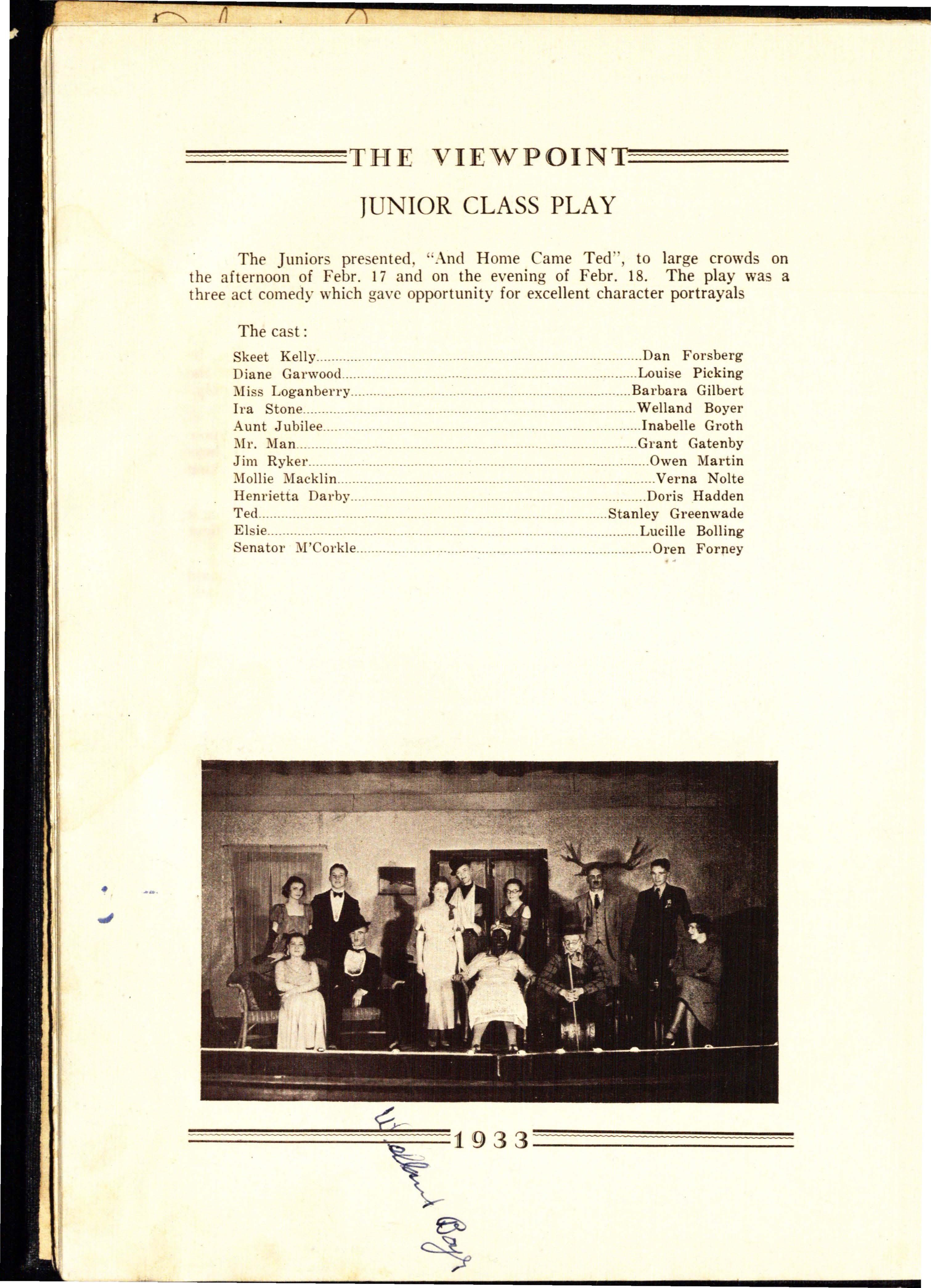 The officer of the year 193 3 were: Harold Dresselhaus, pr es ident; Caroline Kile , vice president , and Betty Reichenber g, sec retary-trea s