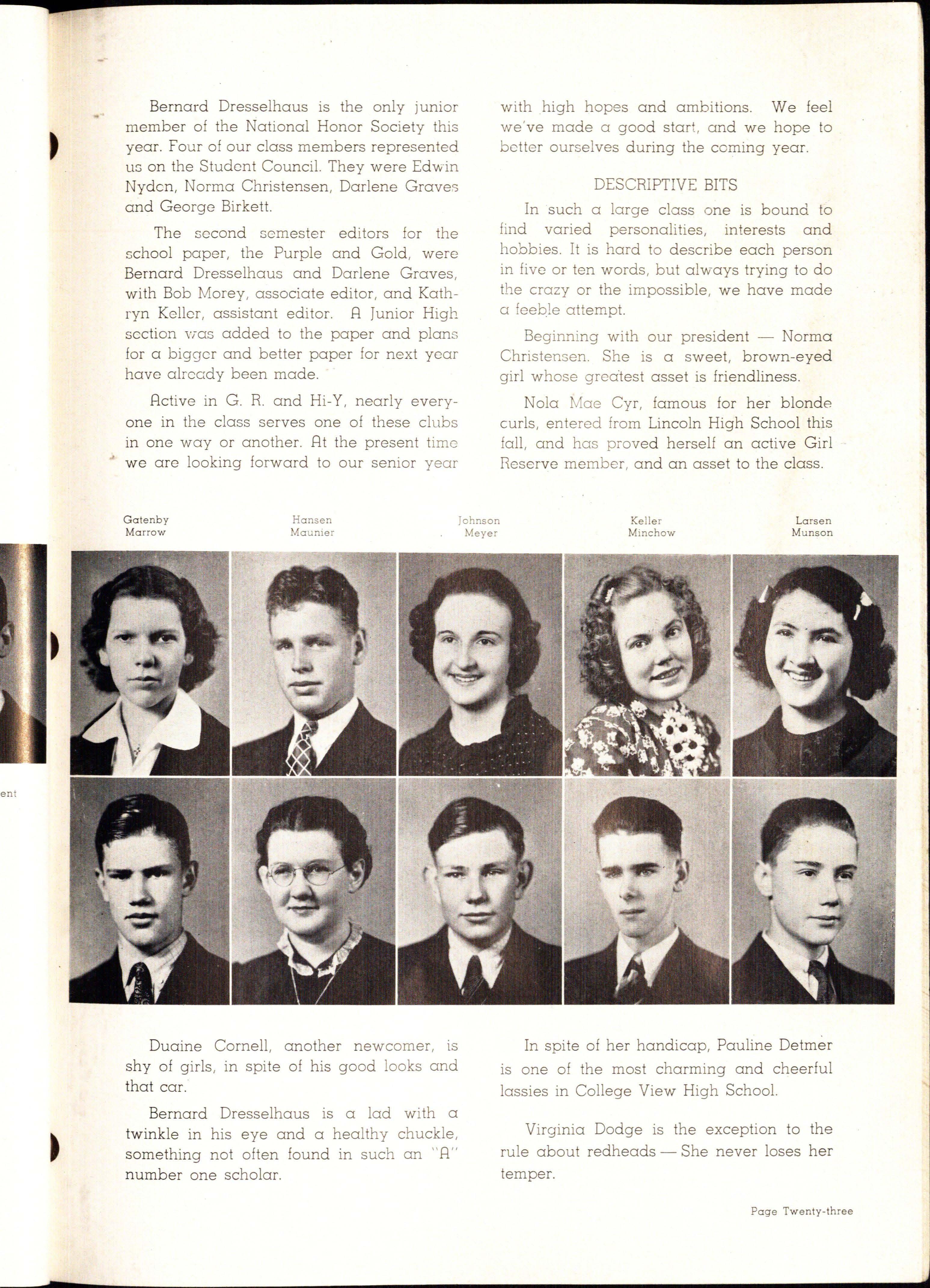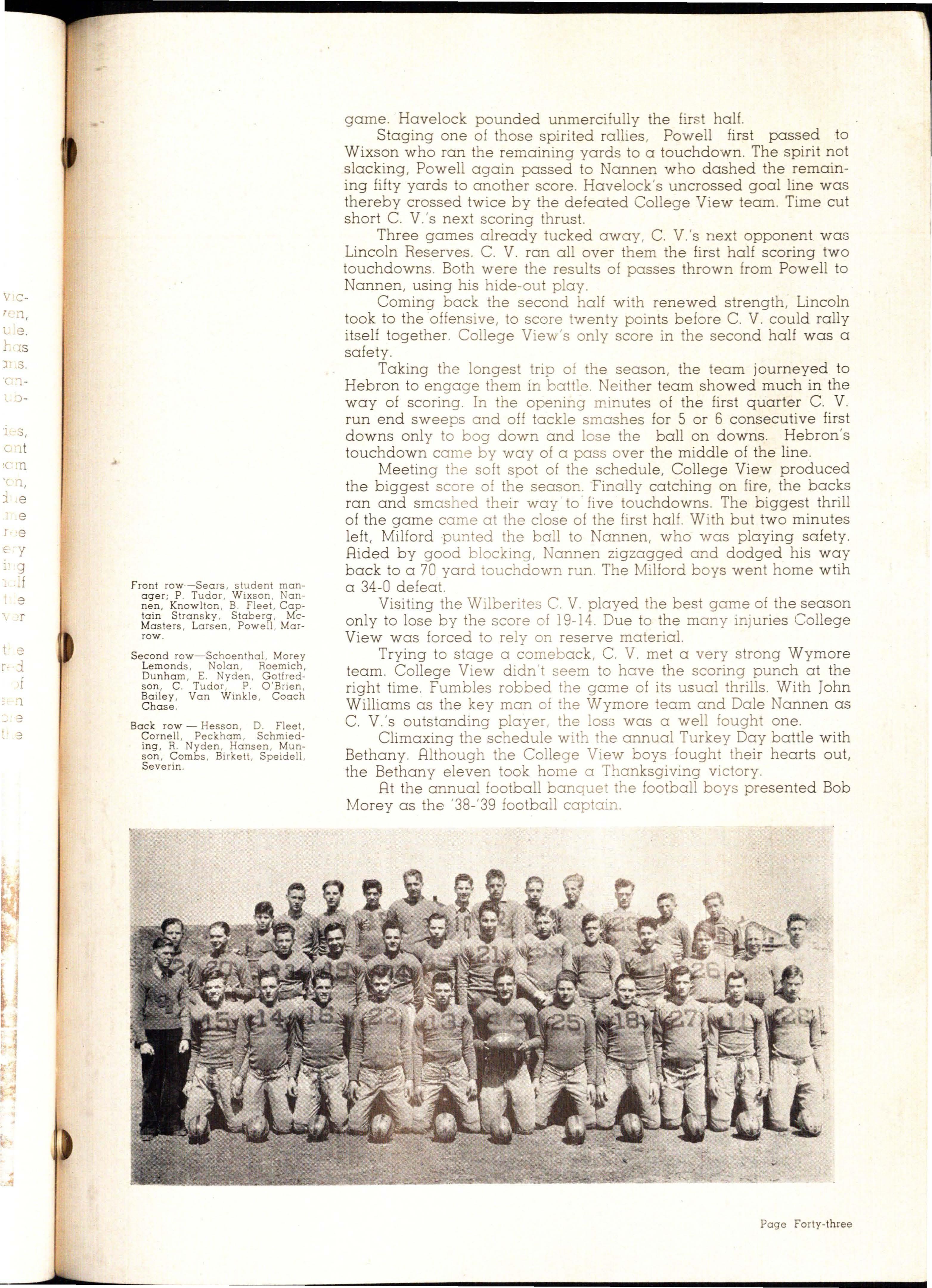 We wish to thank the College View Business men for their splendid support. It is their backing which has made this book possible. We have enjoyed working with our sponsors and we thank them for their gracious co-operation and leadership