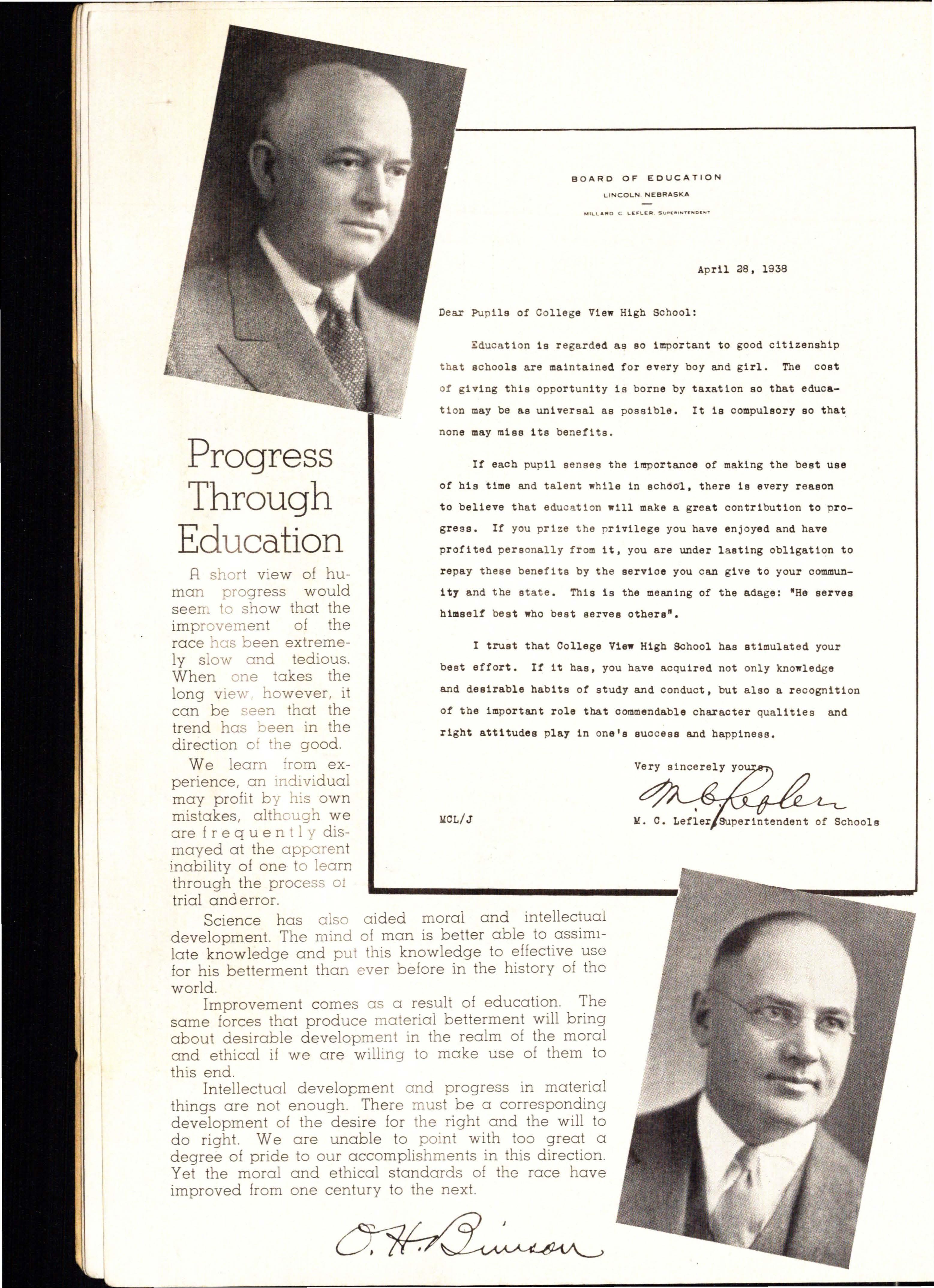 I trust that College View High School has stimulated your beet effort. If it has, you have acquired not only knowledge and desirable habits of study and conduct, but also a recognition