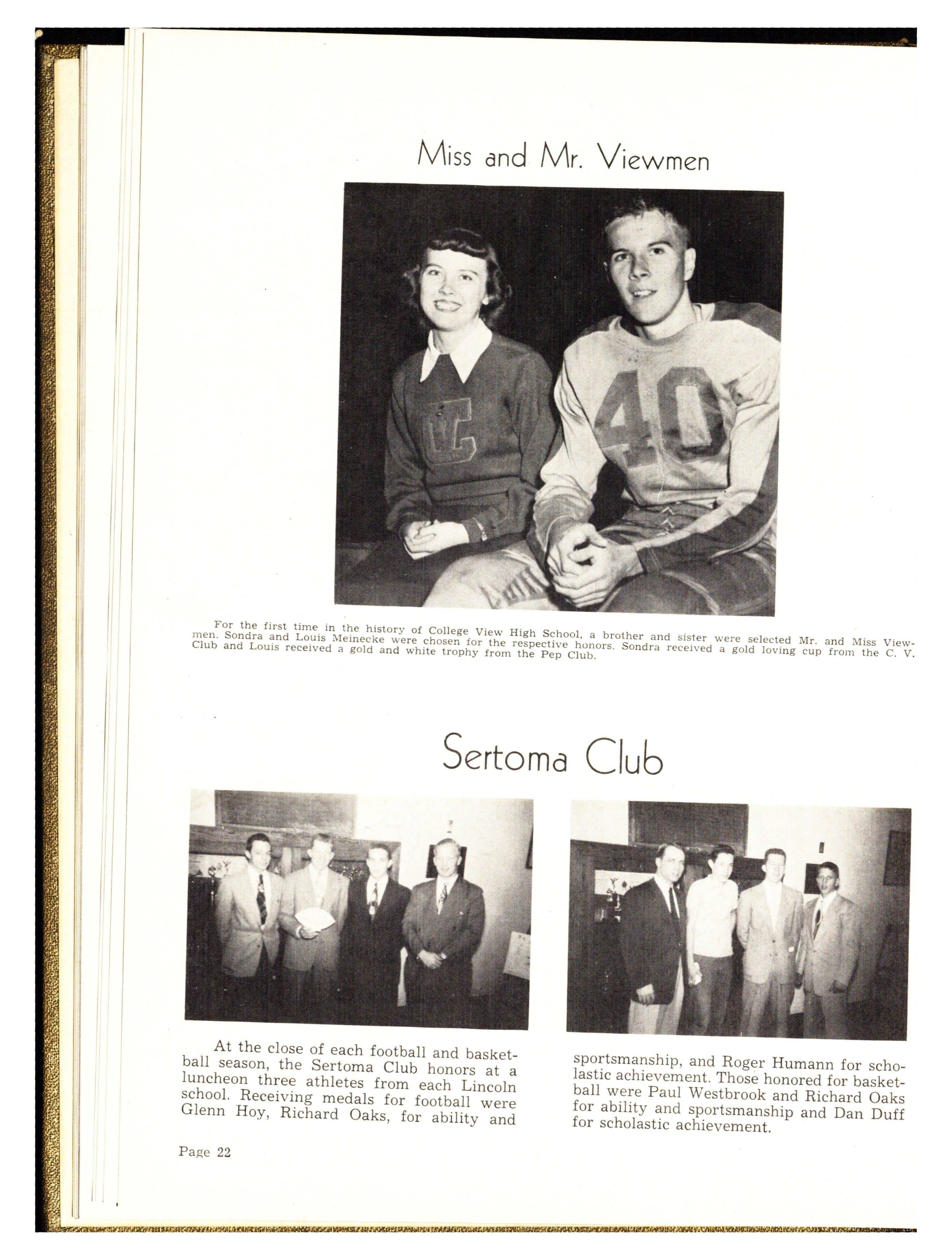 Louis has lettered several times in football and basketball. He was circulation manager on the Viewpoint. He was elected Mr. Viewman for the football Homec o ming .