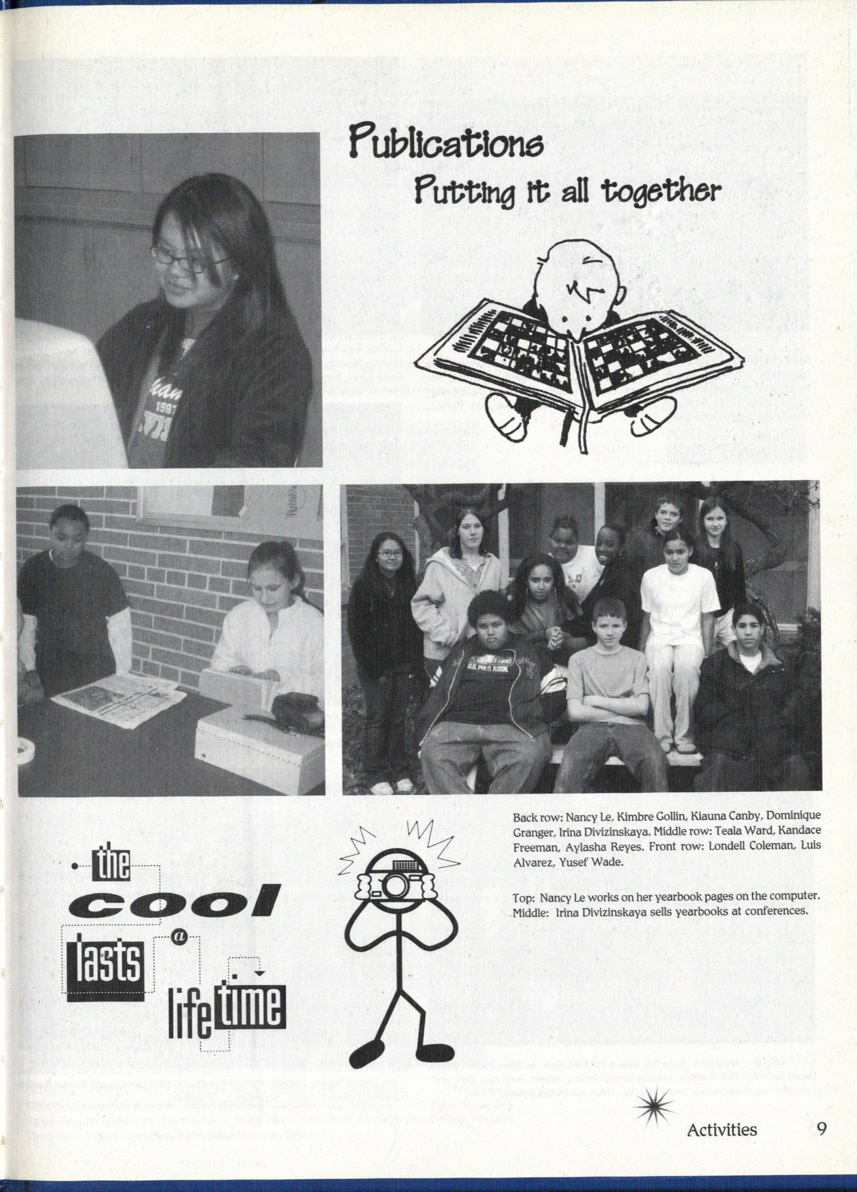 Top: Nancy le works on her yearbook pages on the computer Middle: Irina Divizinskaya sells yearbooks at conferences.