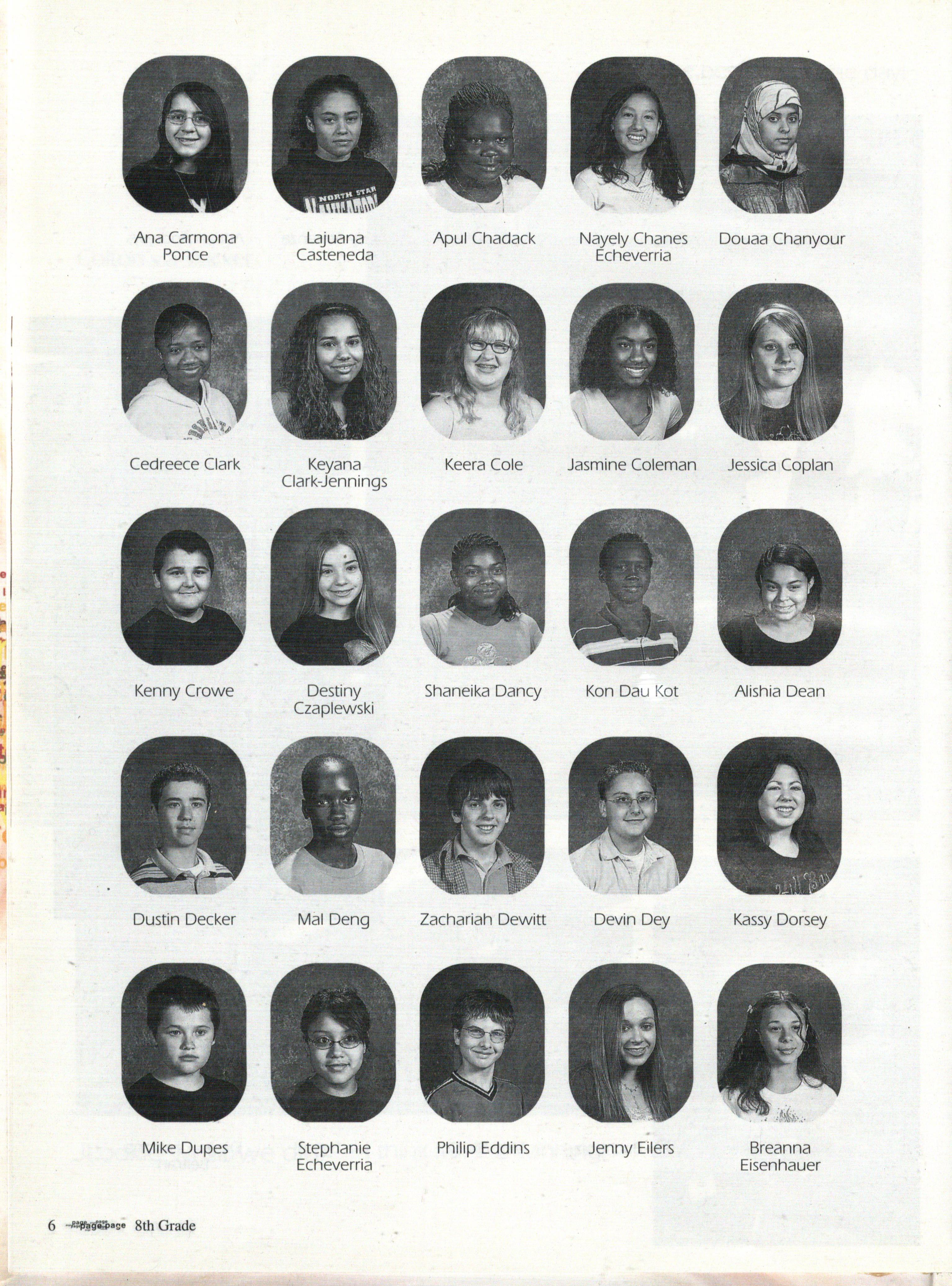 VOLLEYBALL 8th Grade Team First row : Keera Cole, Keyana Clark-Jennings, Emma Johnson, Julie Phan, Destiny Czaplewski Second row: Kassy Almanza, Jasmine Coleman, Abraeia Alexander, Kiesa Jensen, Deshawn Giger, Emily Beach Third row: Lila Byron, Carly Mendoza, Elisa Huff, Kassy Dorsey, Samantha Putnam, Rebecca Simley, Brittanie Schrader, Kay Kulek, Shay Smith, Britanyann Bearce Fourth row: Shalom Parker, Mollie McOuinn, Jessica Coplan.