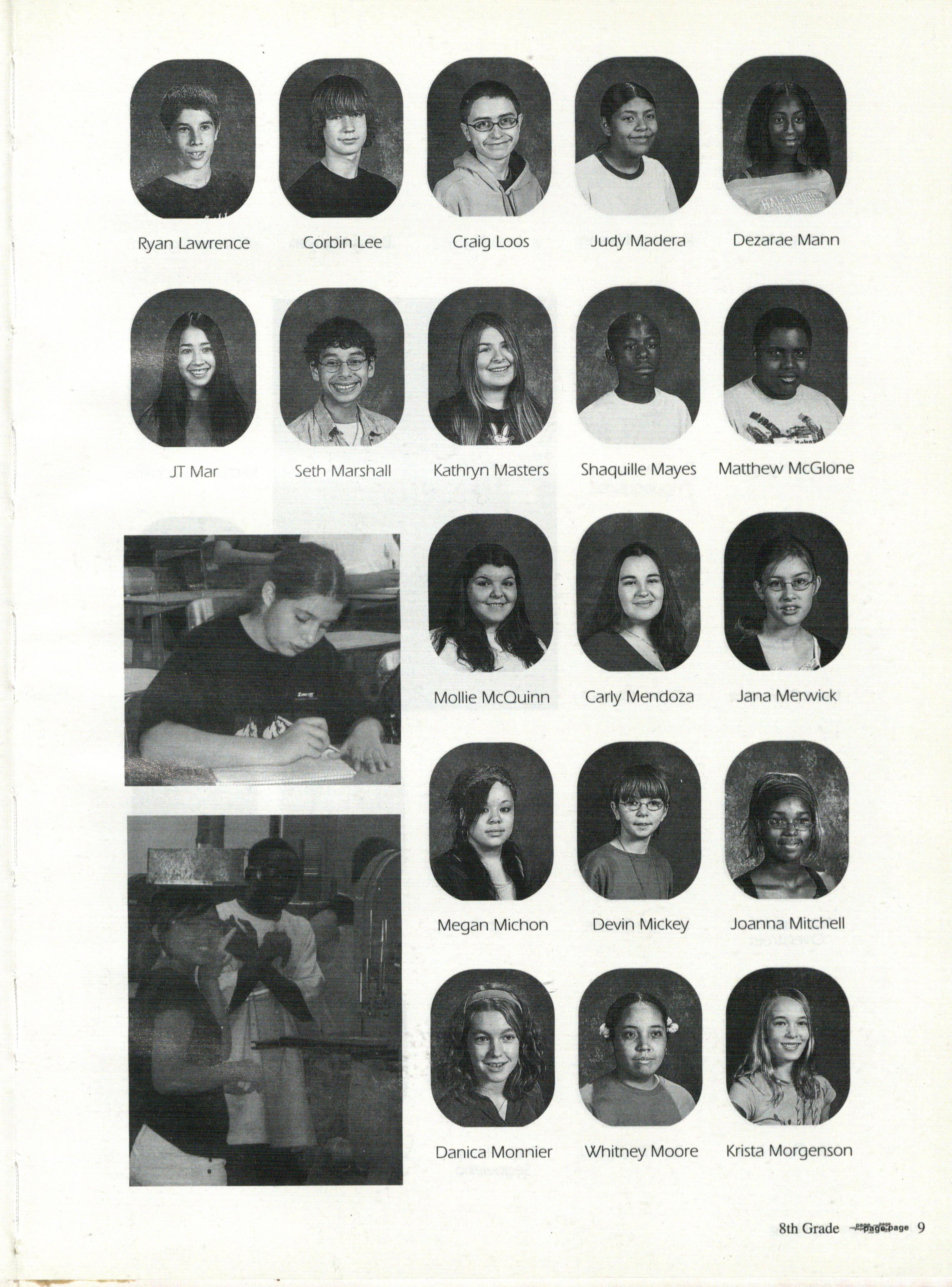 8th Grade Chorus Josh Hernandez, Ana Carmona Ponce, Devin Olson, Crystal Vera, Kathryn Masters, Erica Higgins, Carrie Sullivan, Kiesa Jensen, Carly Mendoza, Yesica Zavala, and ·Emily Beach.