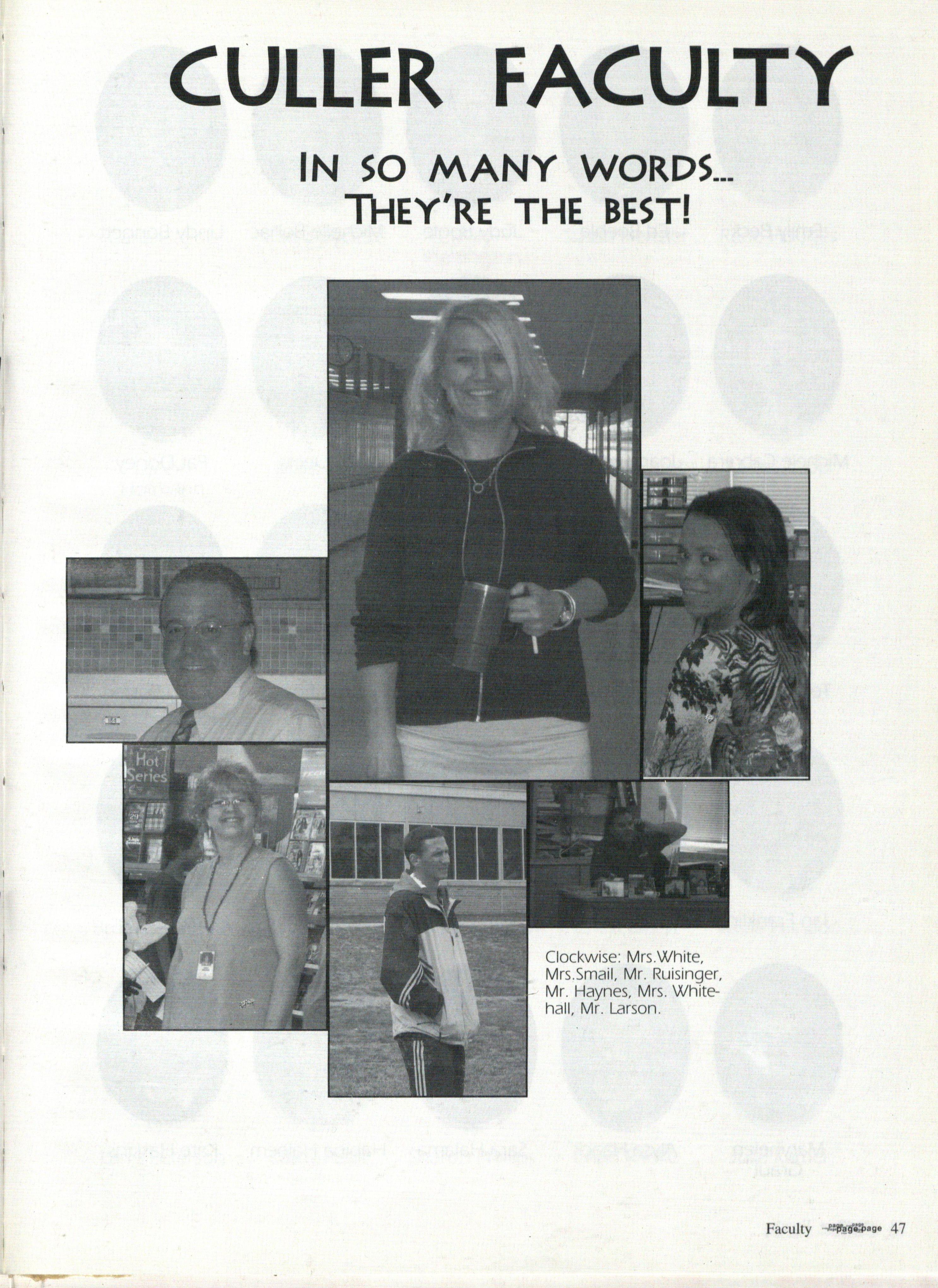 CULLERFACULTY IN SO MANY WORDS ... THEY'RETHEBEST! Clockwise: Mr s White, Mr s Smai l, Mr Ruisinger, - Mr. Haynes, Mrs . Whitehall, Mr Larson.