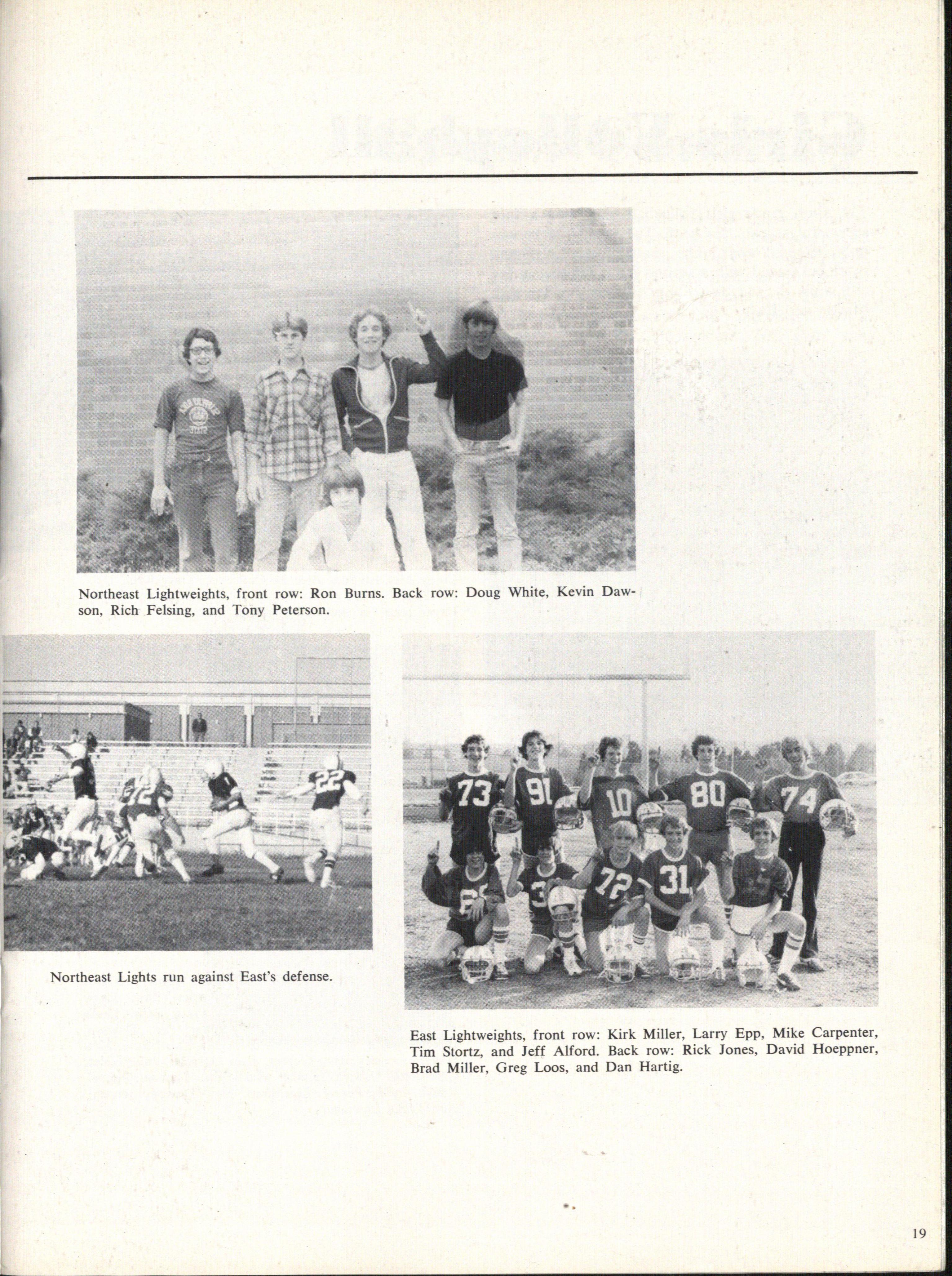 East Lightweights , front row: Kirk Miller , Larry Epp , Mike Carpenter , Tim Stortz, and Jeff Alford. Back row: Rick Jones, David Hoeppner, Brad Miller , Greg Loos, and Dan Hartig.