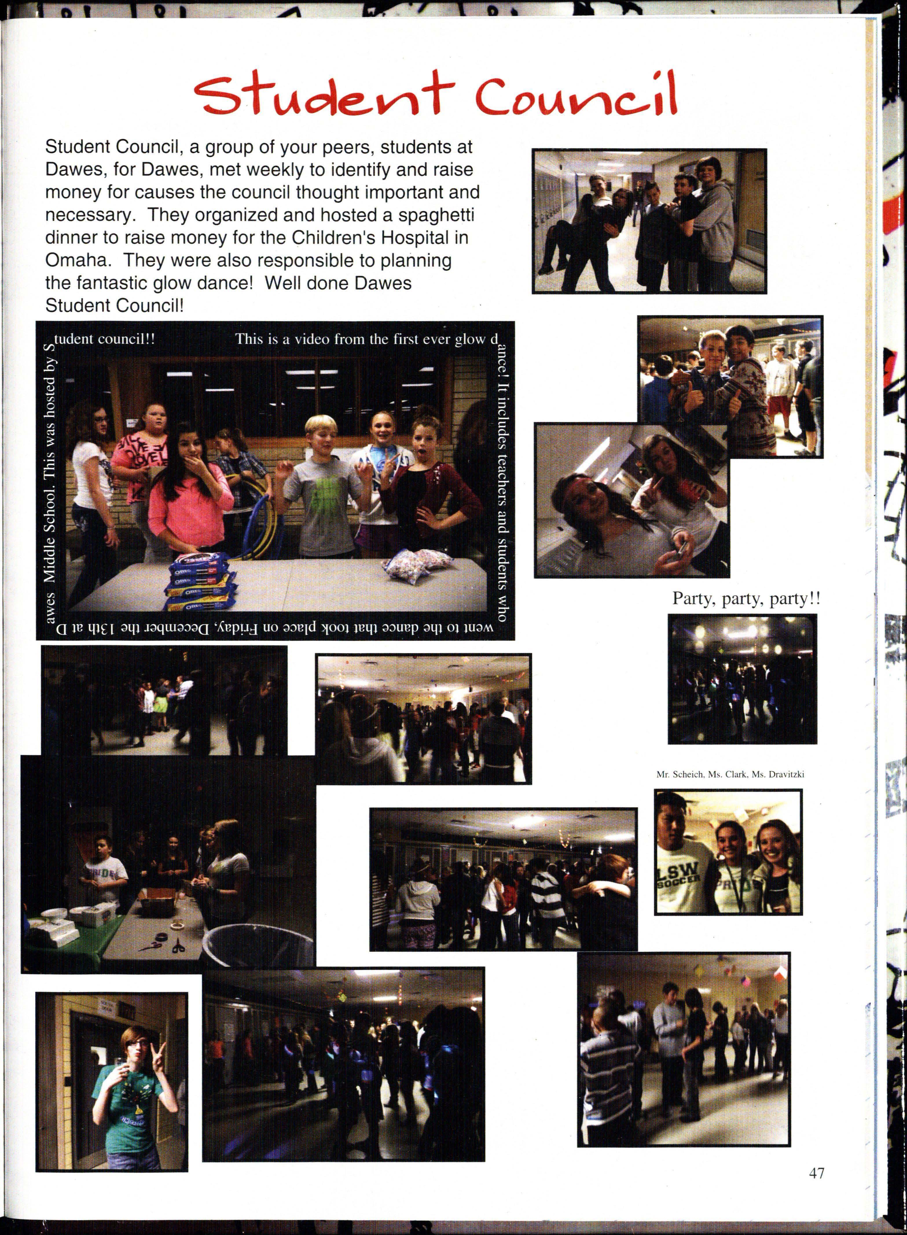 Student Council, a group of your peers, students at Dawes, for Dawes, met weekly to identify and raise money for causes the council thought important and necessary. They organized and hosted a spaghetti dinner to raise money for the Children's Hospital in Omaha. They were also responsible to planning the fantastic glow dance! Well done Dawes Student Council!