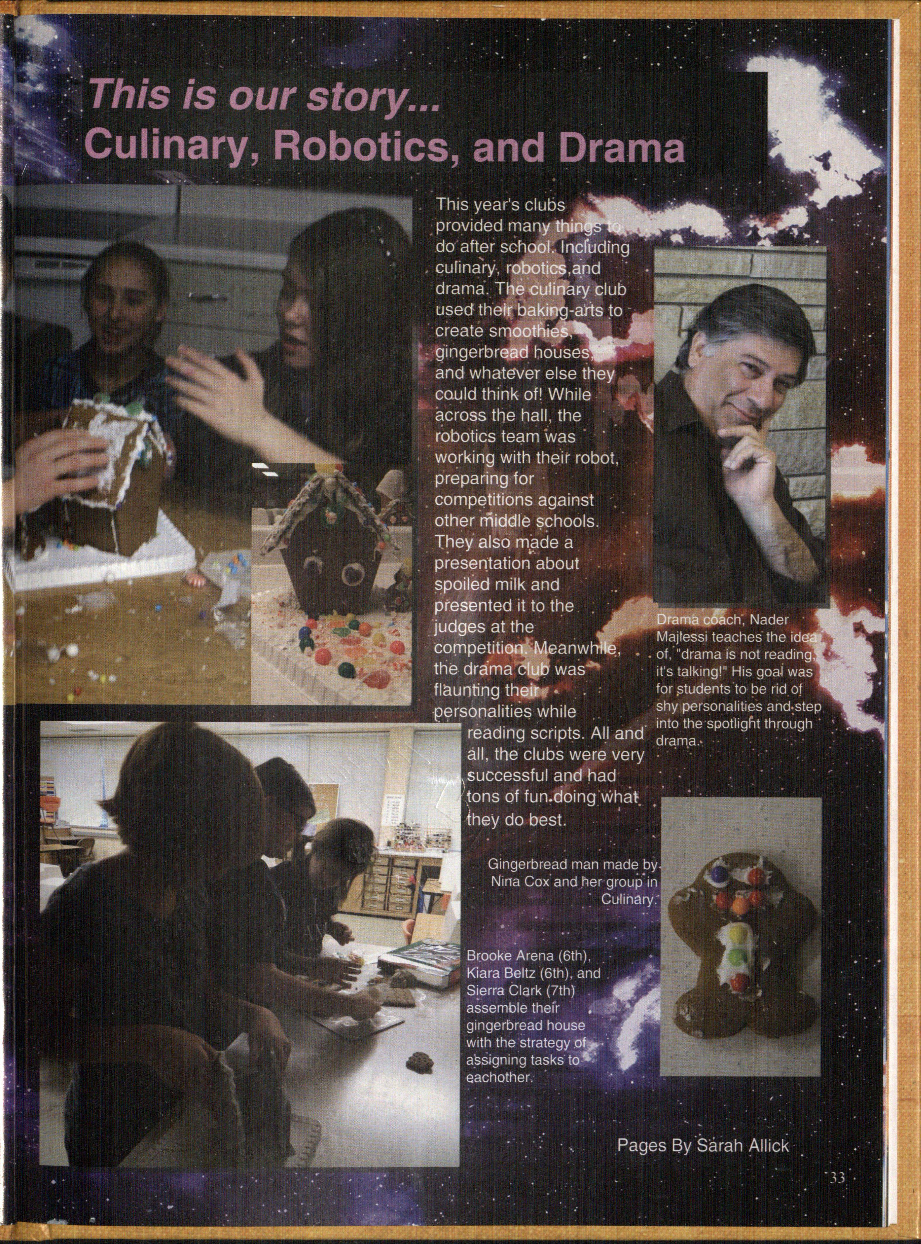 Publications consists of thirty-one eighth graders, and the teacher, Ms. Bruce. The students were picked based on what Academic Connection classes they chose in a survey given to them in seventh grade.