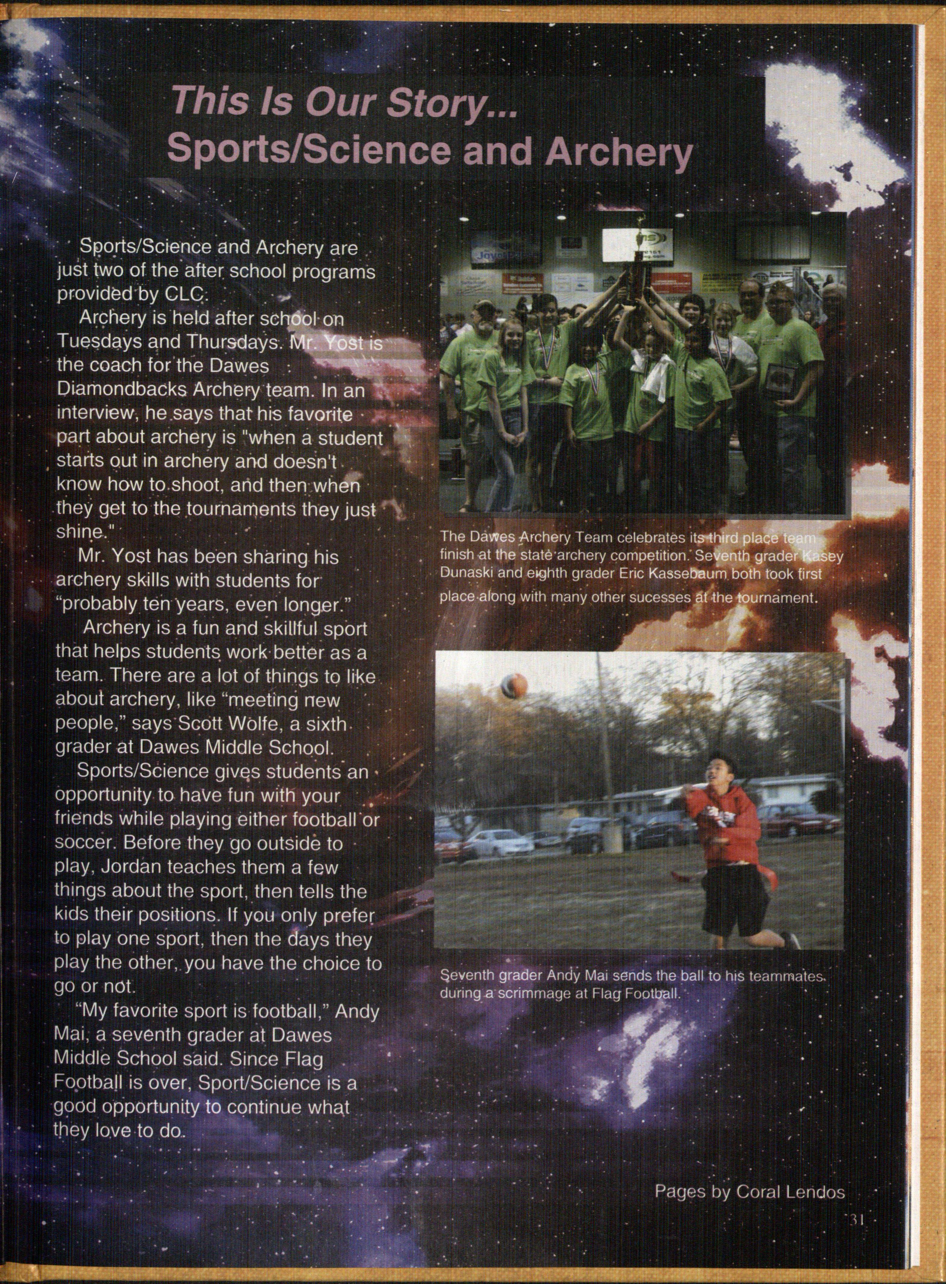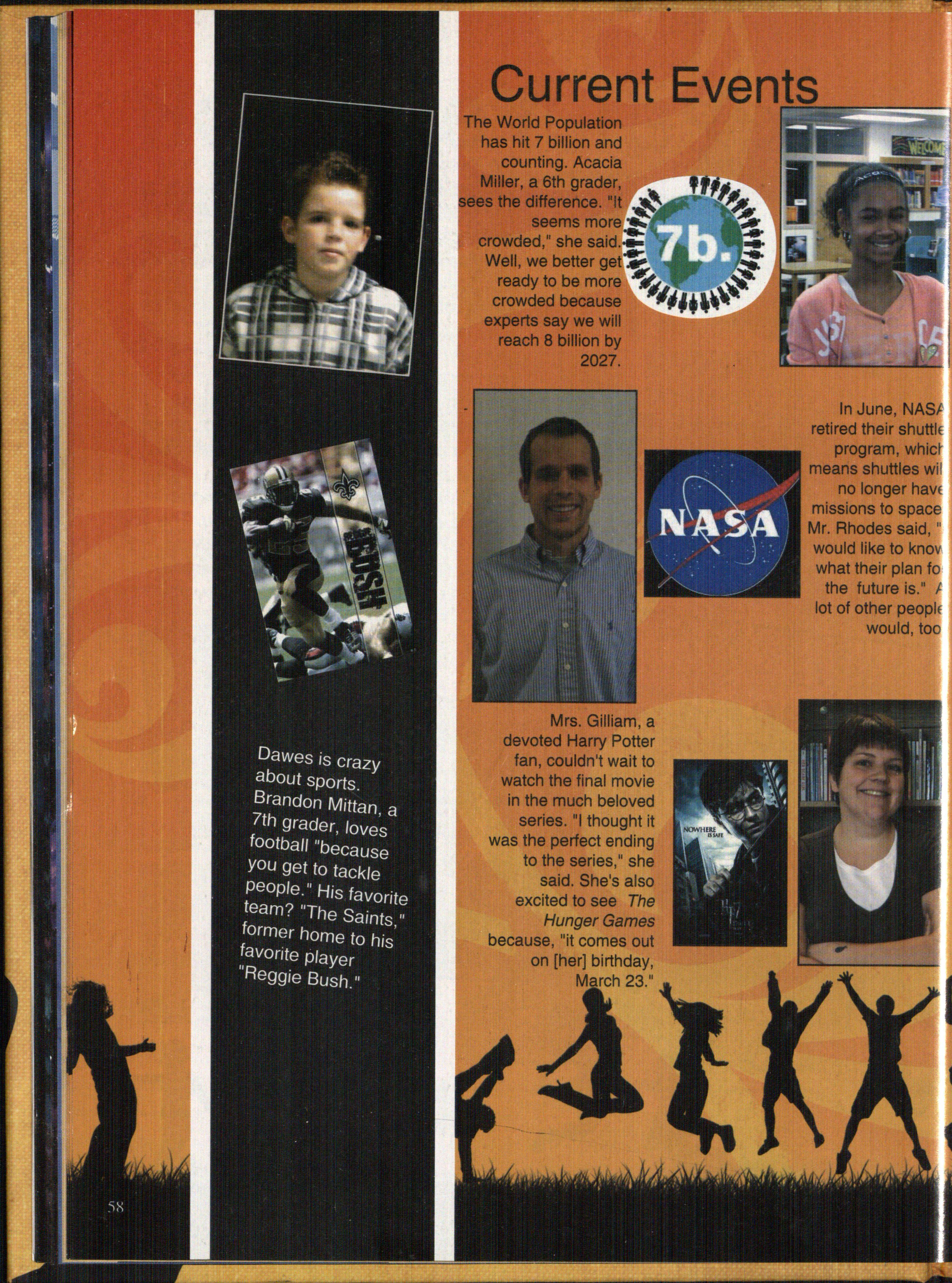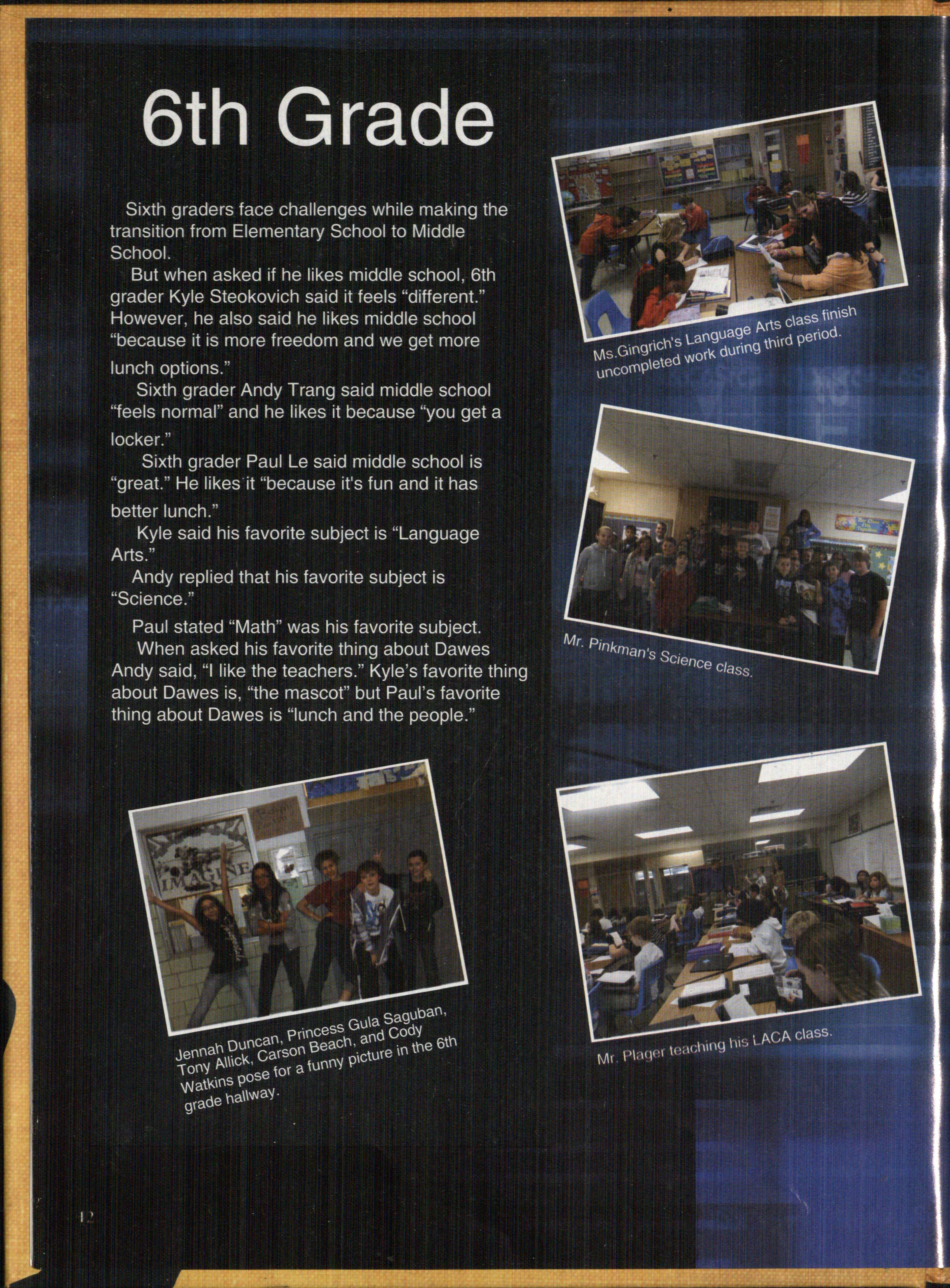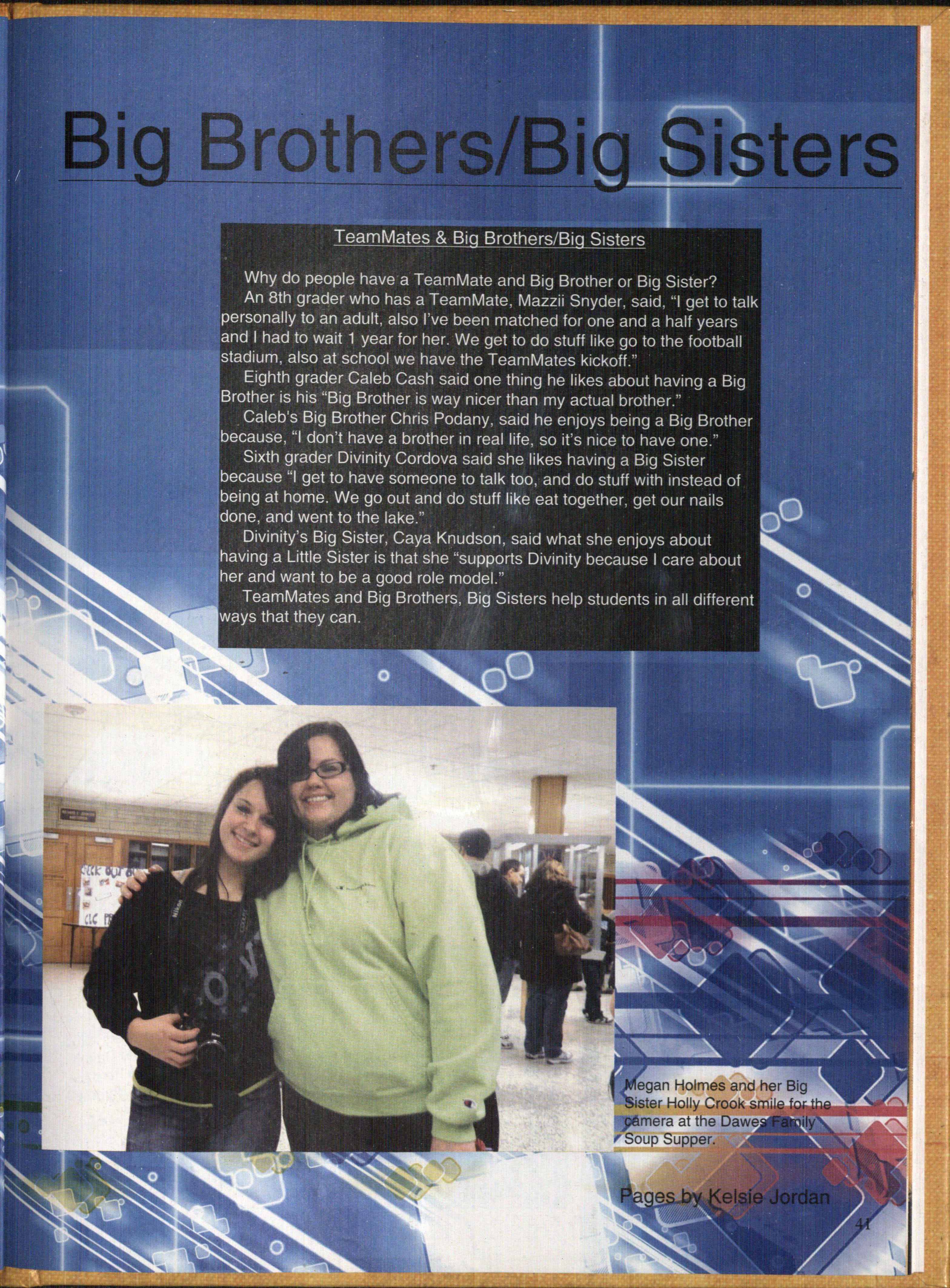 The Yearbook staff is a group of students who meet every day during 3rd period in their Publications class. This is where the yearbook is made. Publications is the combination of the following two words: public and relations. In Publications, they started off writing stories and interviewing. They learned to use quotes from the interview to write phenomenal stories. A main focus they had with stories was to inform students what was happening at Dawes. The students also learn a lot about how to create a yearbook so that they can make it exactly how they want it.