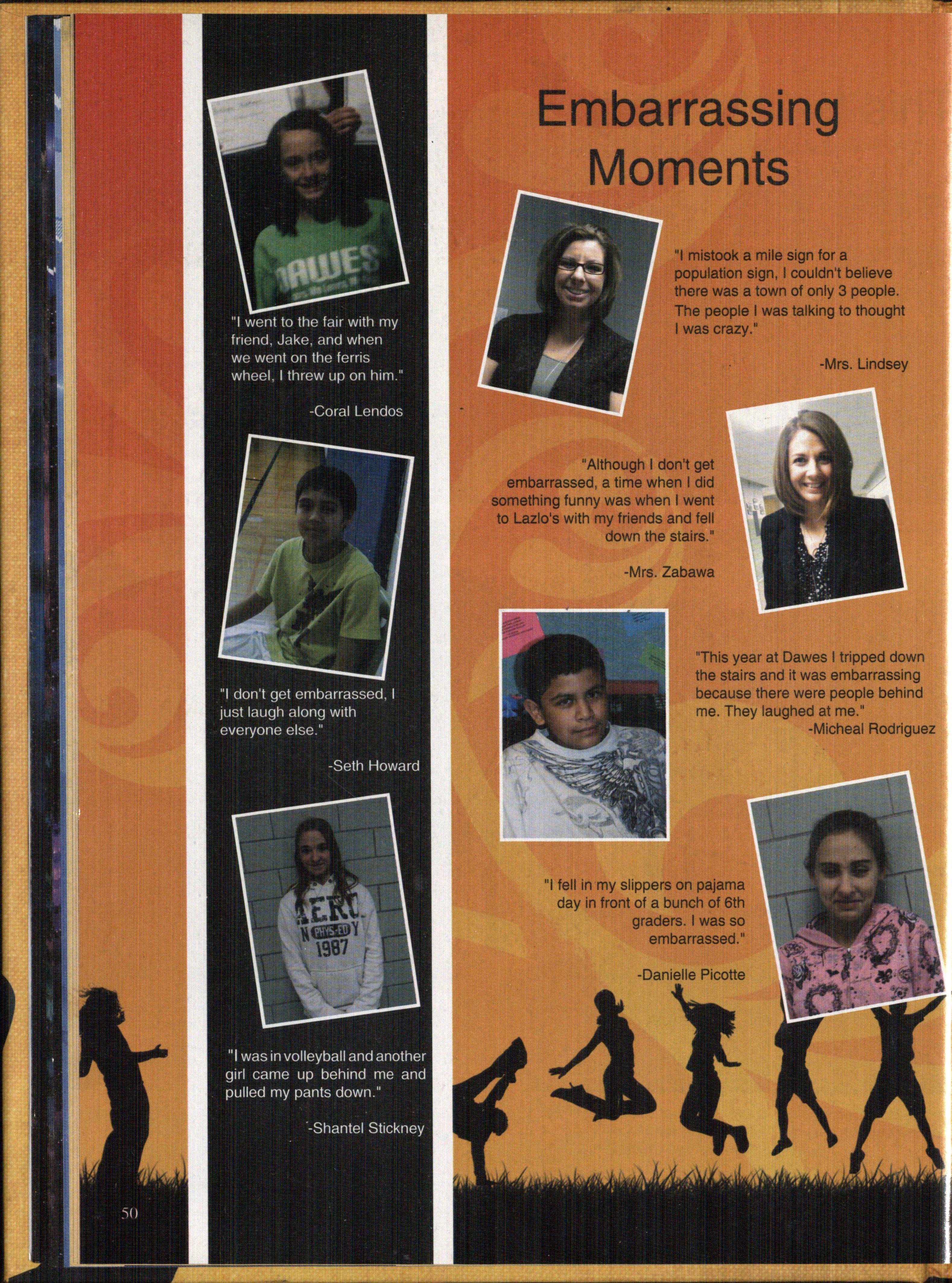 "This year at Dawes I tripped down the stairs and it was embarrassing because there were people behind me. They laughed at me."