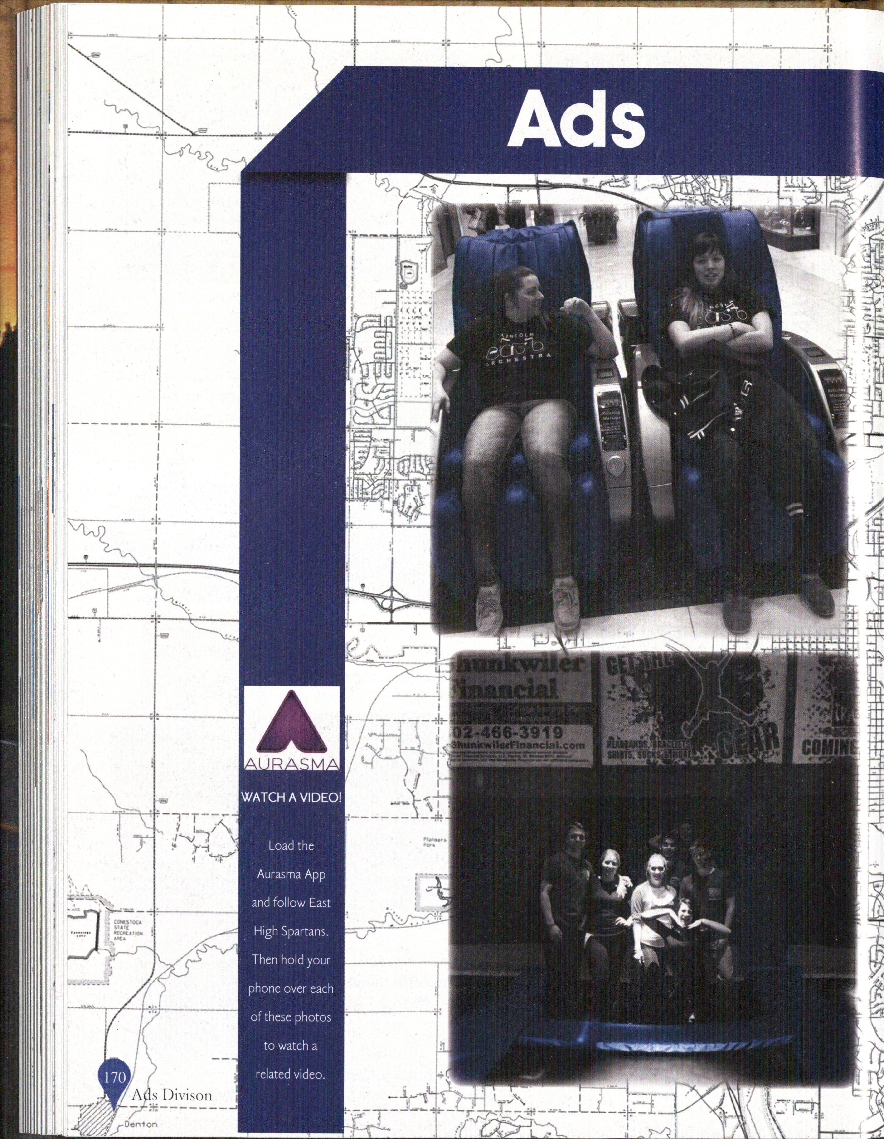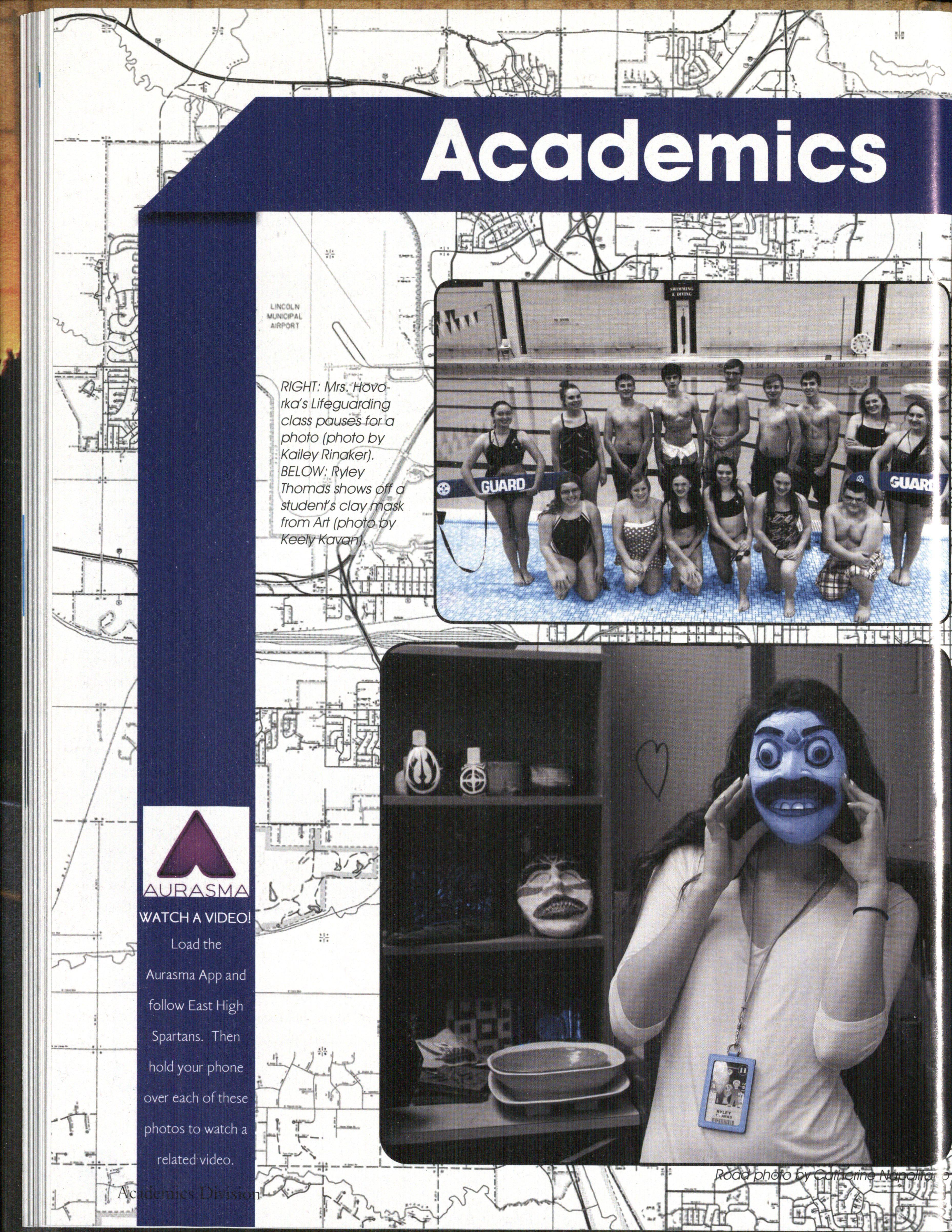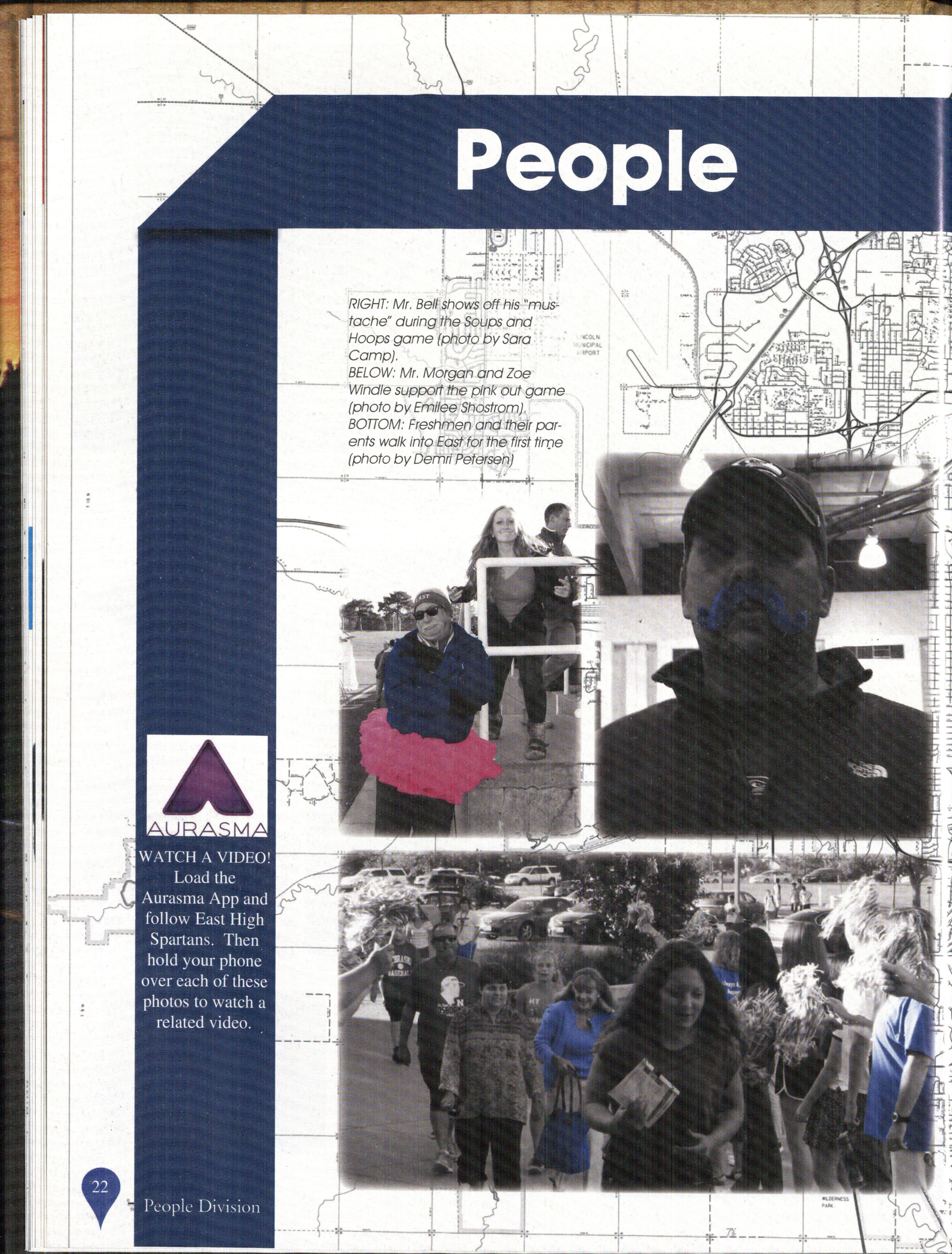 This year East High has added a new ele~ent to our yearbook. Every time you see this Aurasma symbol you will be able to watch a video! Just download the Aurasma AURAS MA app and follow EastSpartans, then