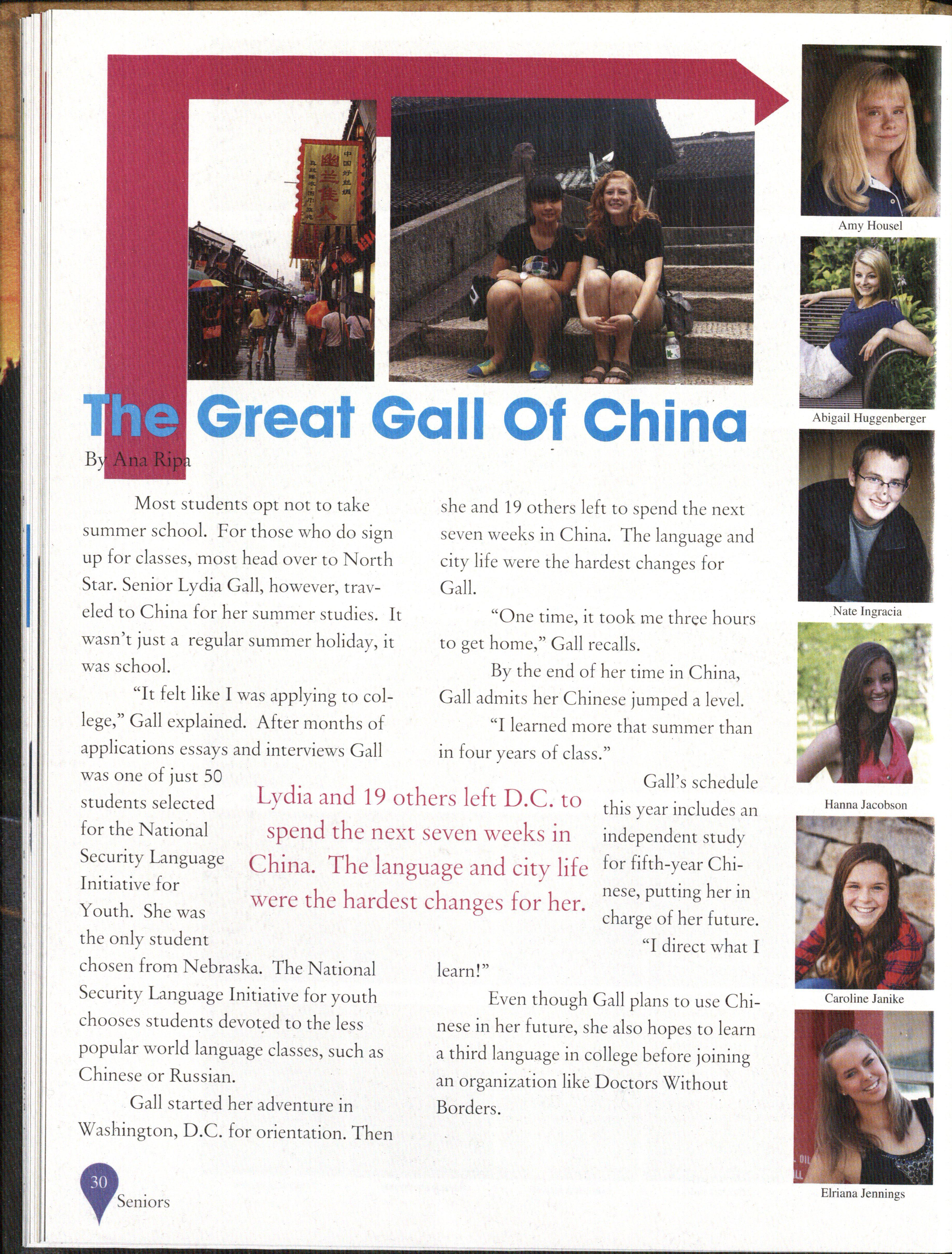 ACTIVITIES: Was involved in a lot of school activities and service projects in China.