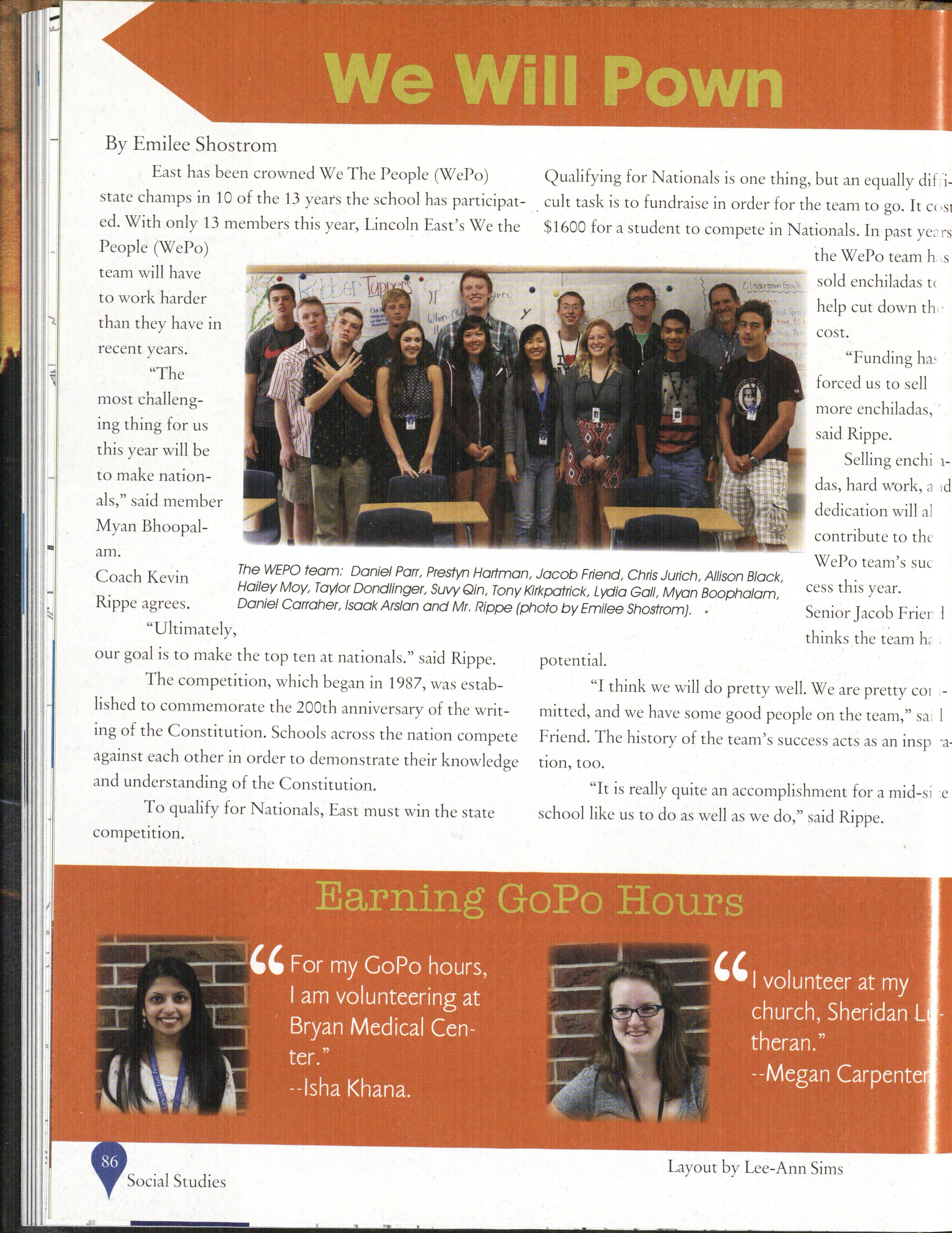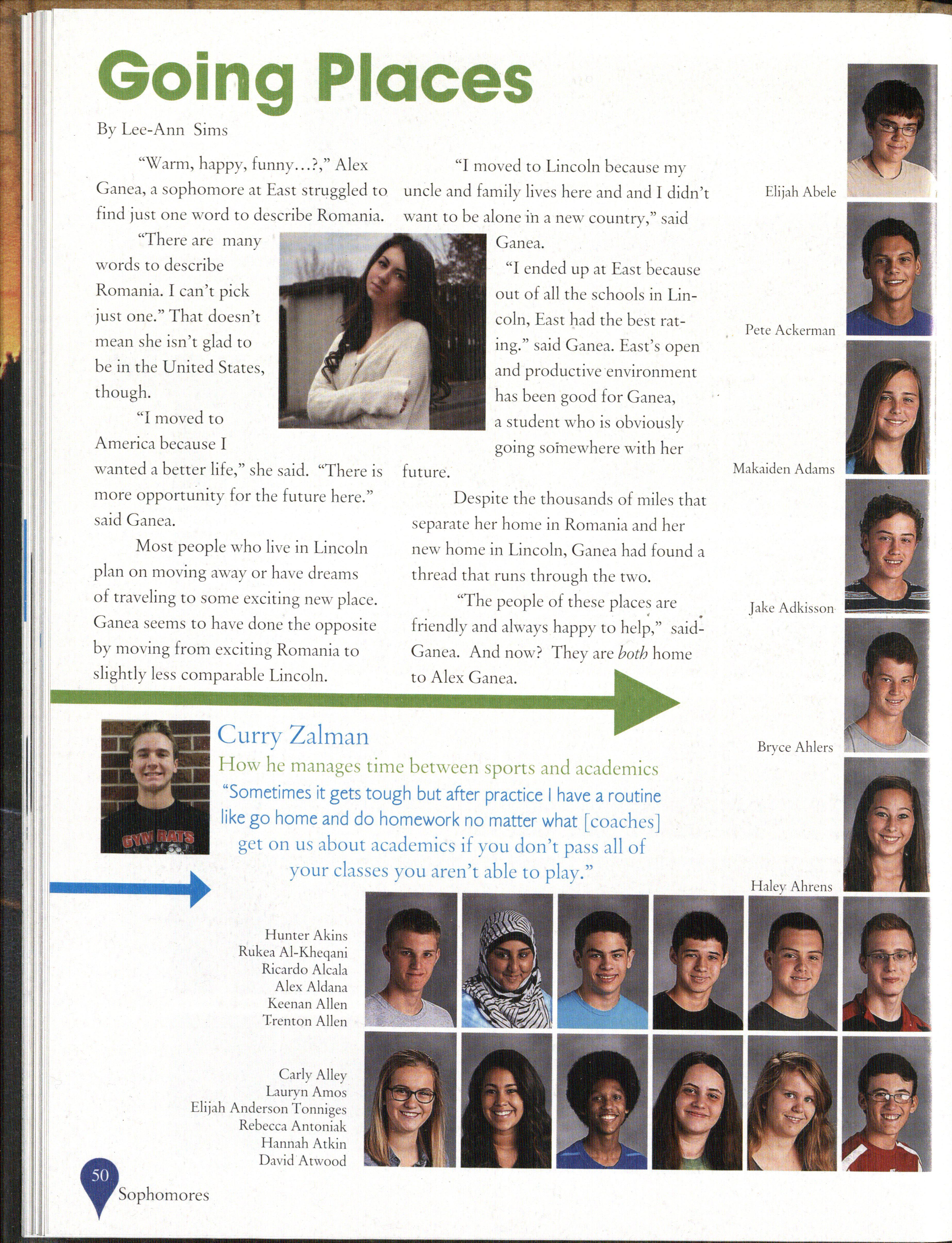 BEST THING ABOUT LINCOLN: "I like how everyone is proud of Lincoln East and proud to liv~ in Nebraska."