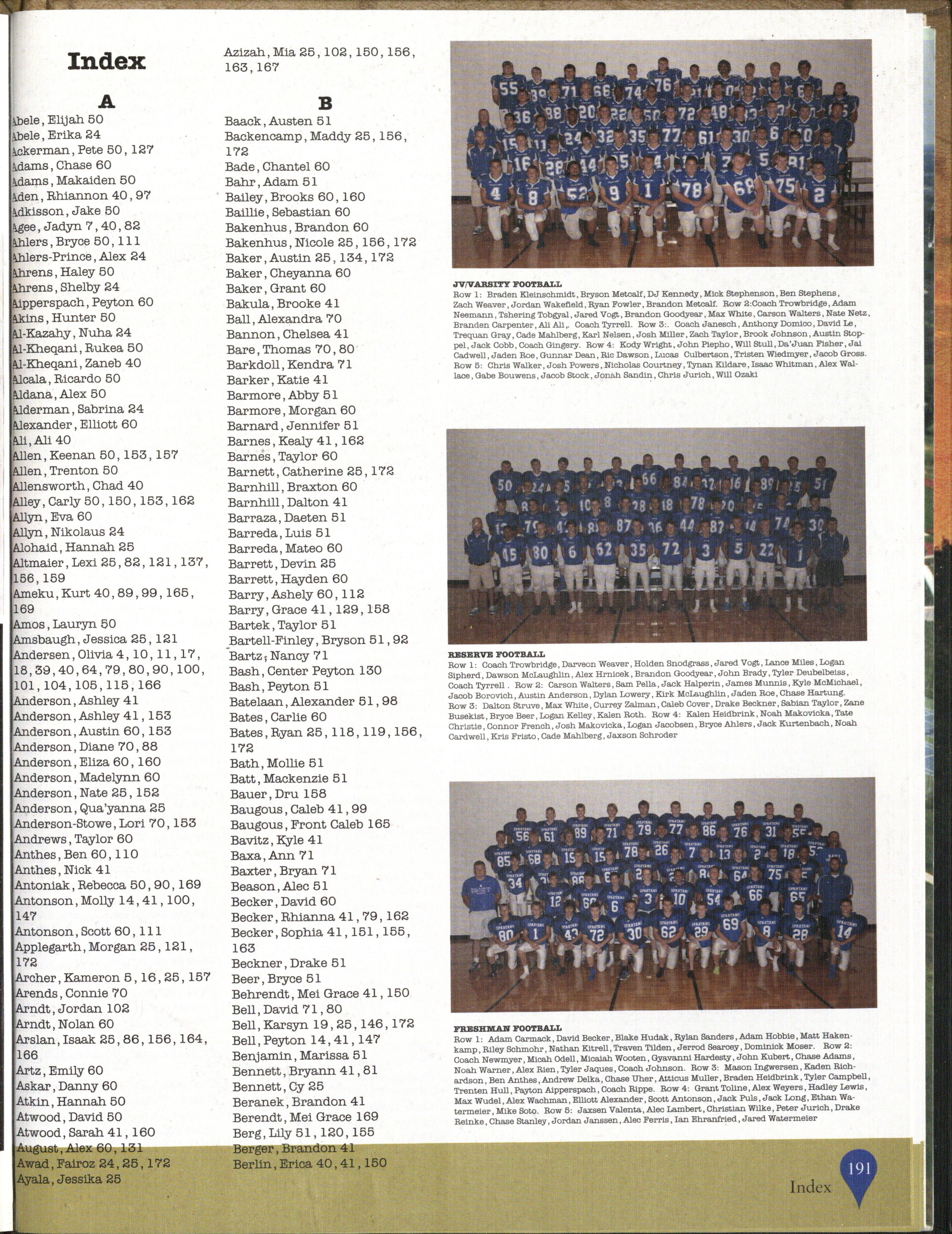 Row 1 : Adam Carmack, David Becker, Blake H udak, R ylan Sande r s, Adam H obbi e Matt Hakenkamp, Riley Schmohr, N athan Kitrell, Traven Tild en, Je rrod Searcey, Dominick Mo s e r. Row 2: Coach Newmyer, Micah Od e ll, Micaiah Wooten, Gyavanni Hardesty, Jo hn K u bert , Chas e Adams, Noah Warner, Alex Rien, Tyler Jaques, Coach Johnson Row 3 : Mason Ingwers en, Kad en R ichardson, Ben An thes, An drew Delka, Chase Uhe r , Atticus Mulle r, Brade n He i dbrink, Tyle r Camp bell , Trenten Hull, Payton Aip pers pach, Coach Rip pe. Row 4: Grant Toline, Alex Weyers, Hadley Lewis, Max Wudel, Alex Wachman, E lliott Al exande r, Scott Antonso n , Jack Puls, J ack Lo ng, Ethan Watermeier, Mike Soto. Row 5: Jaxs e n Valenta, Alec Lambert, Christian Wilke, P eter Jurich, Drake Reinke, Chase Stanley, Jordan Janssen, Alec Ferris, Ian Ehranfried, Jared Watermeier