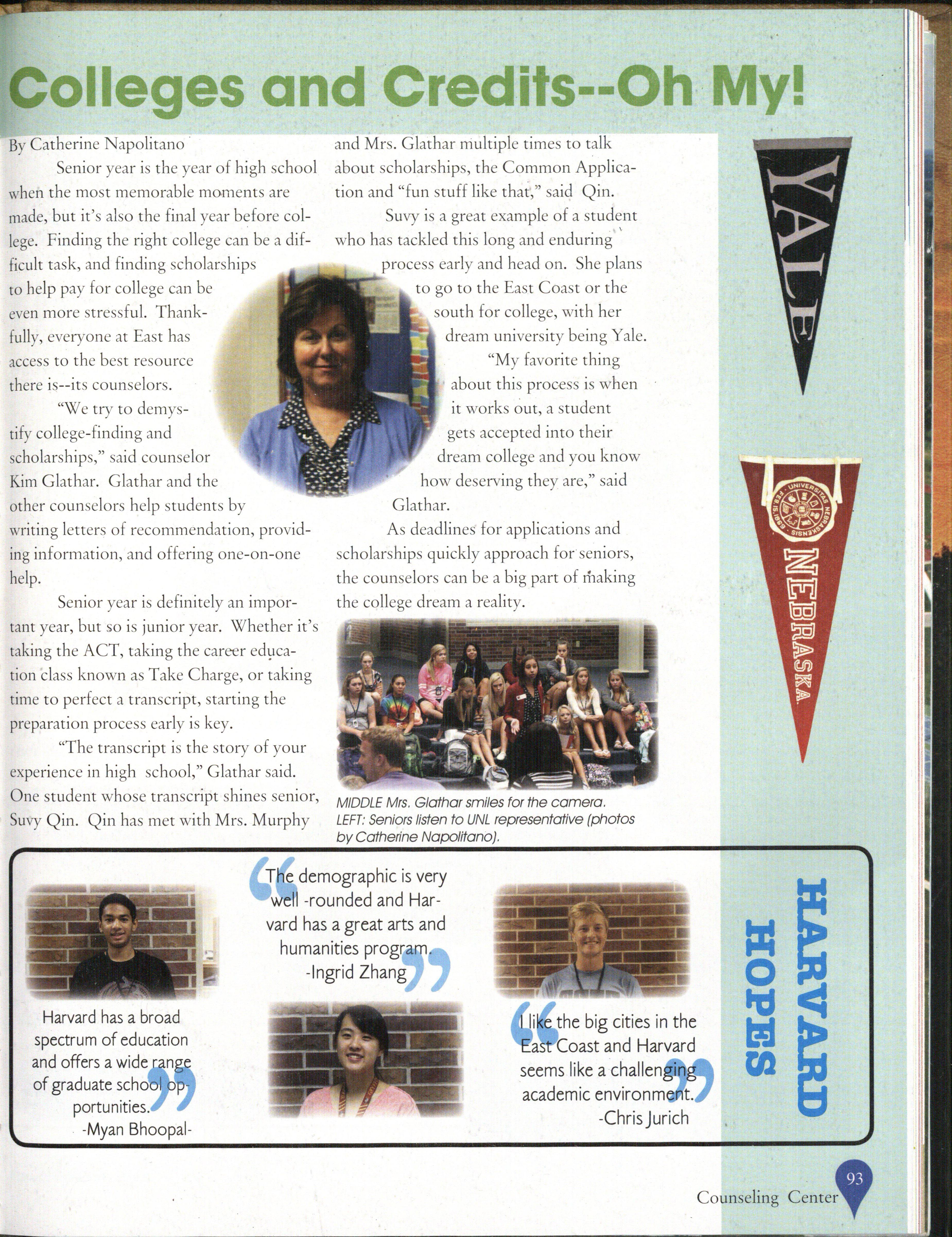 "Lincoln is really beautiful, and everyone is so nice. At East, you get many more opportunities to choose what you want to do and what classes you want to take ."
