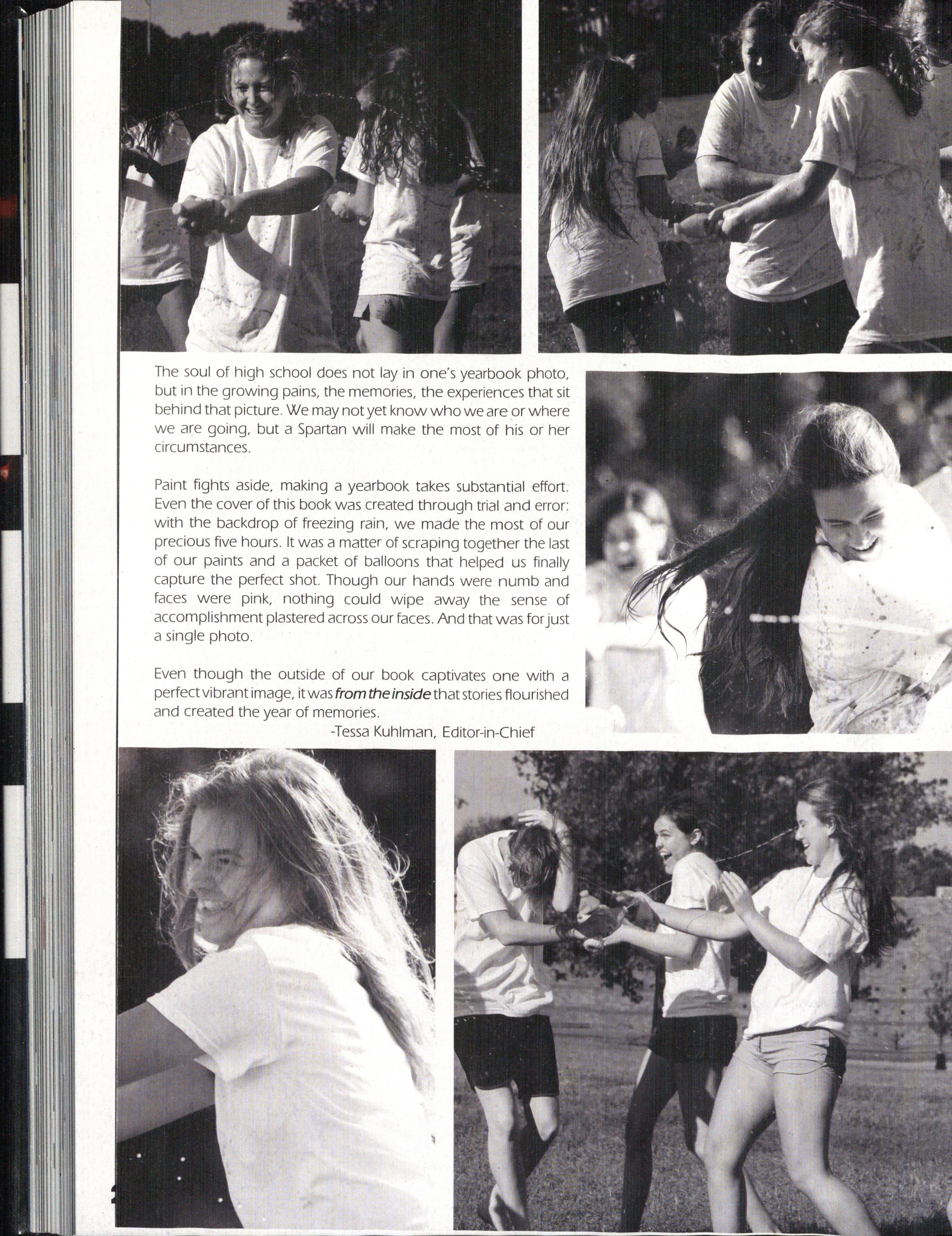 The soul of high school does not lay in one's yearbook photo, but in the growing pains, the memories, the experiences that sit behind that picture We may not yet know who we are or where we are going, but a Spartan will make the most of his or her circumstances