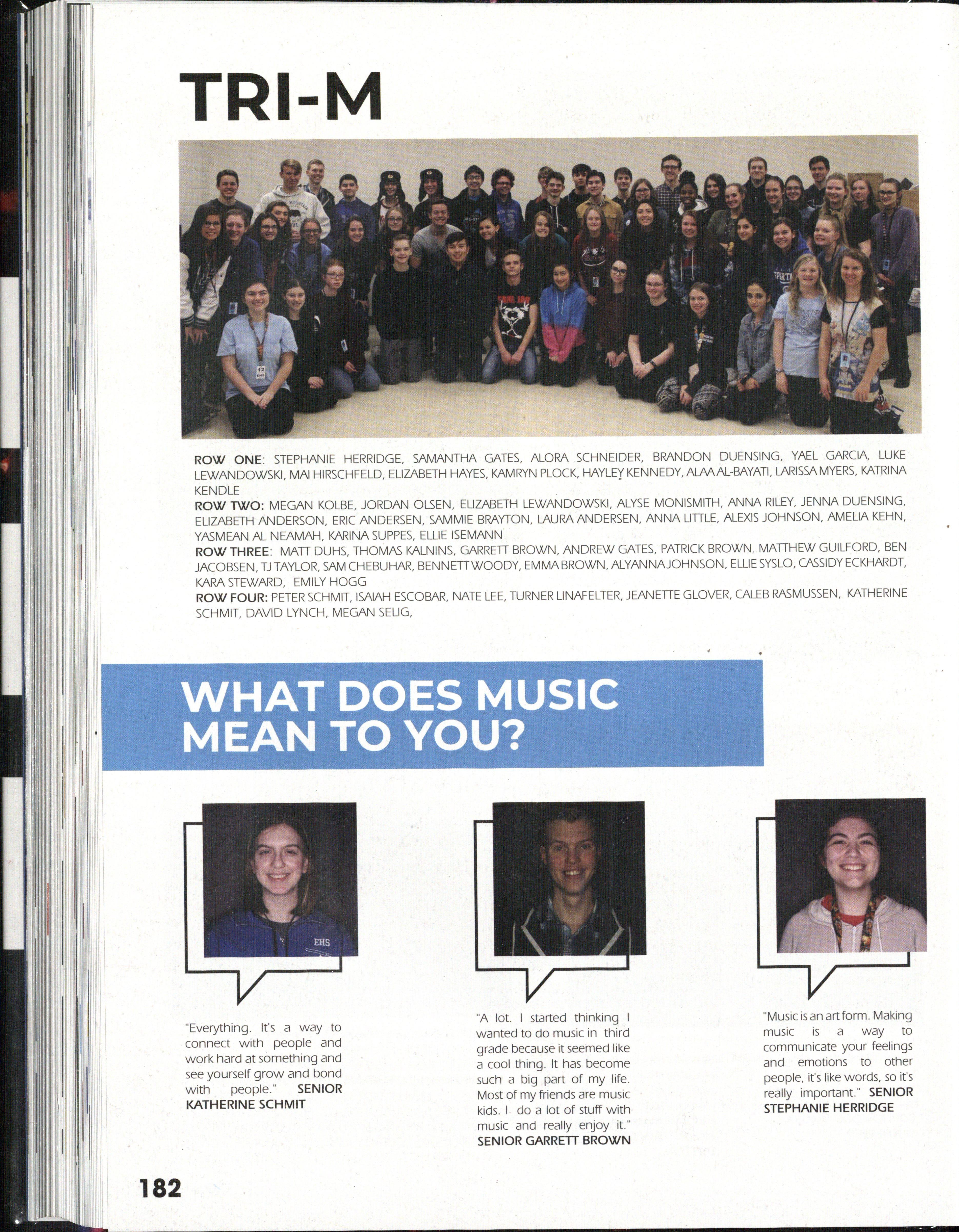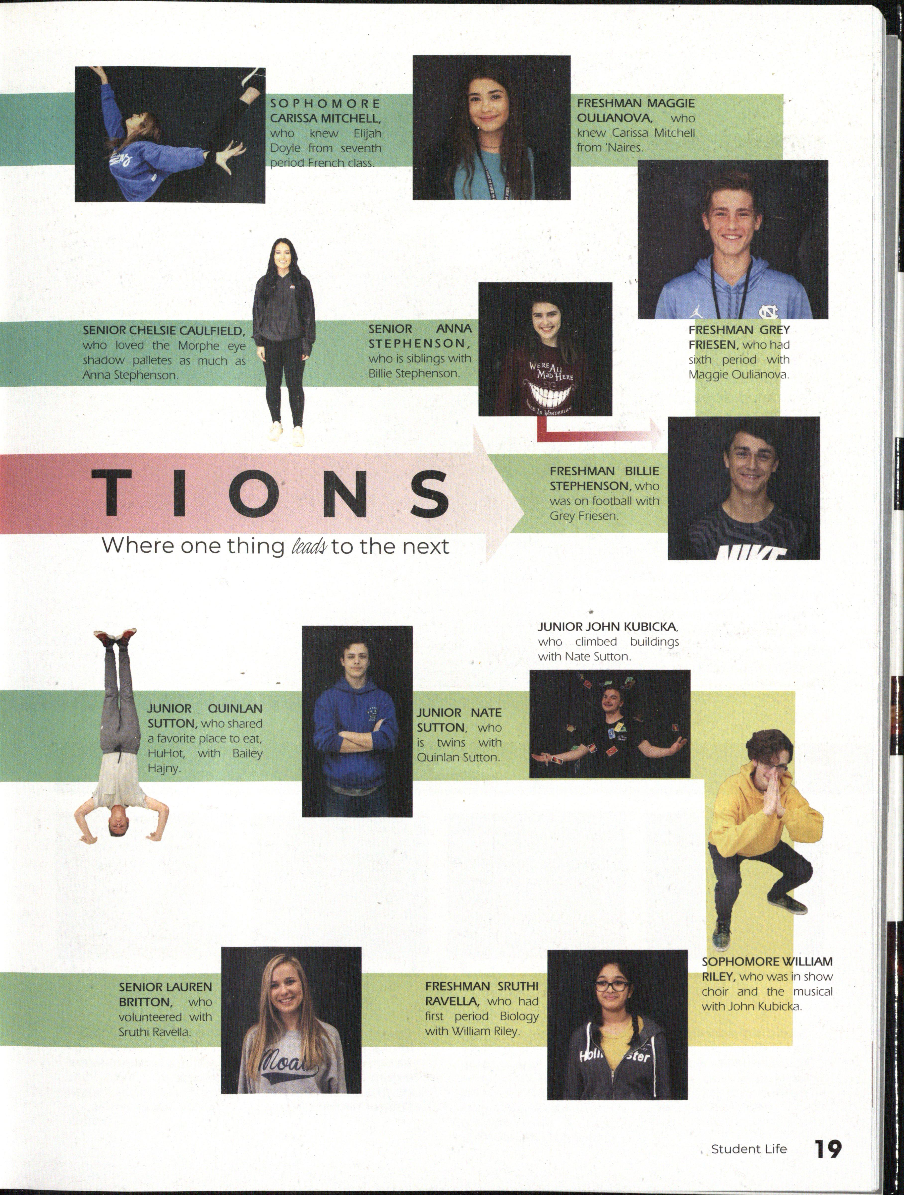 "I was on the tennis team and so probably just everyone getting closer to all my teammates and just Student Council f orming relationships with people that I spend most of my time in high school with ." BENJAMIN PUENTE
