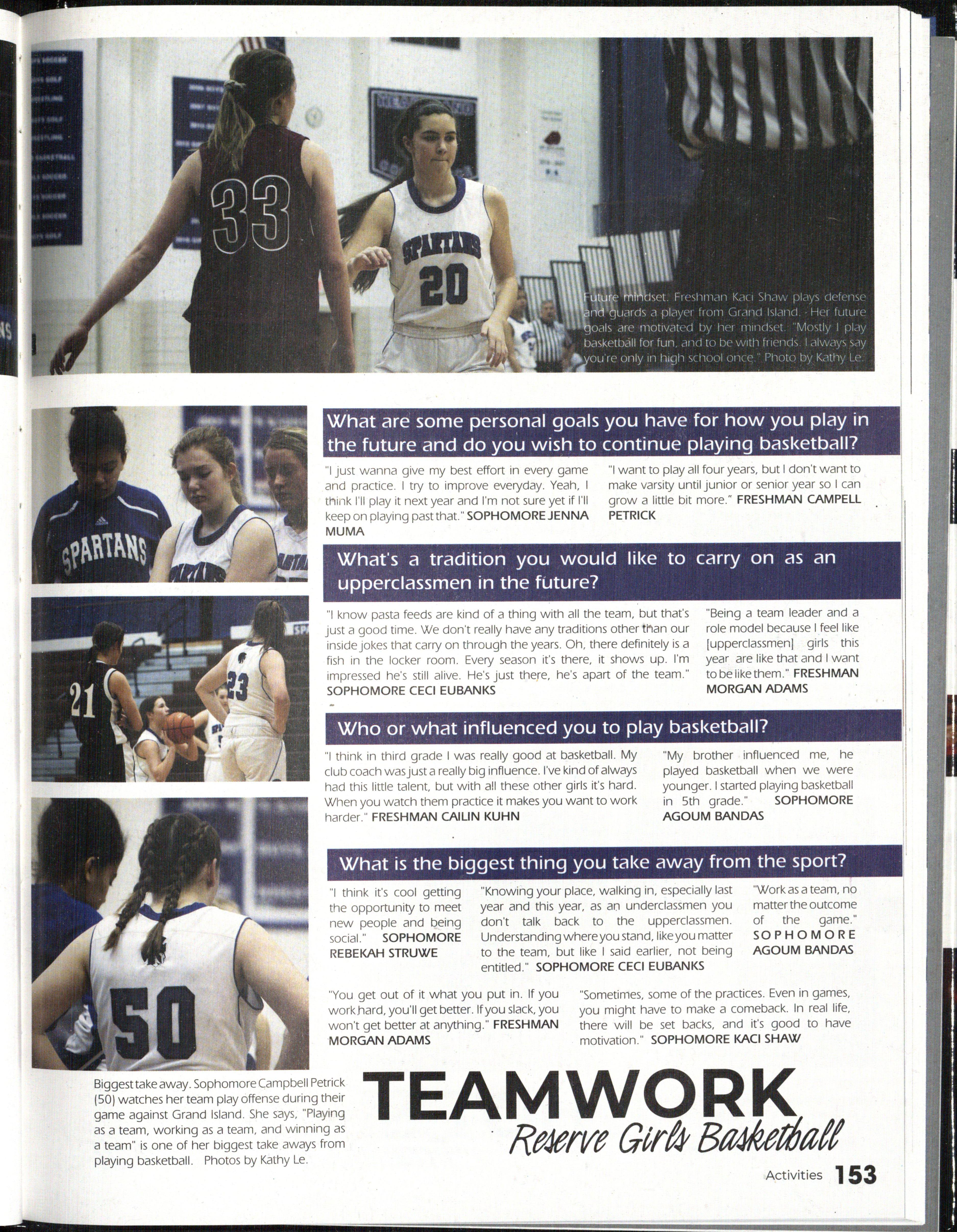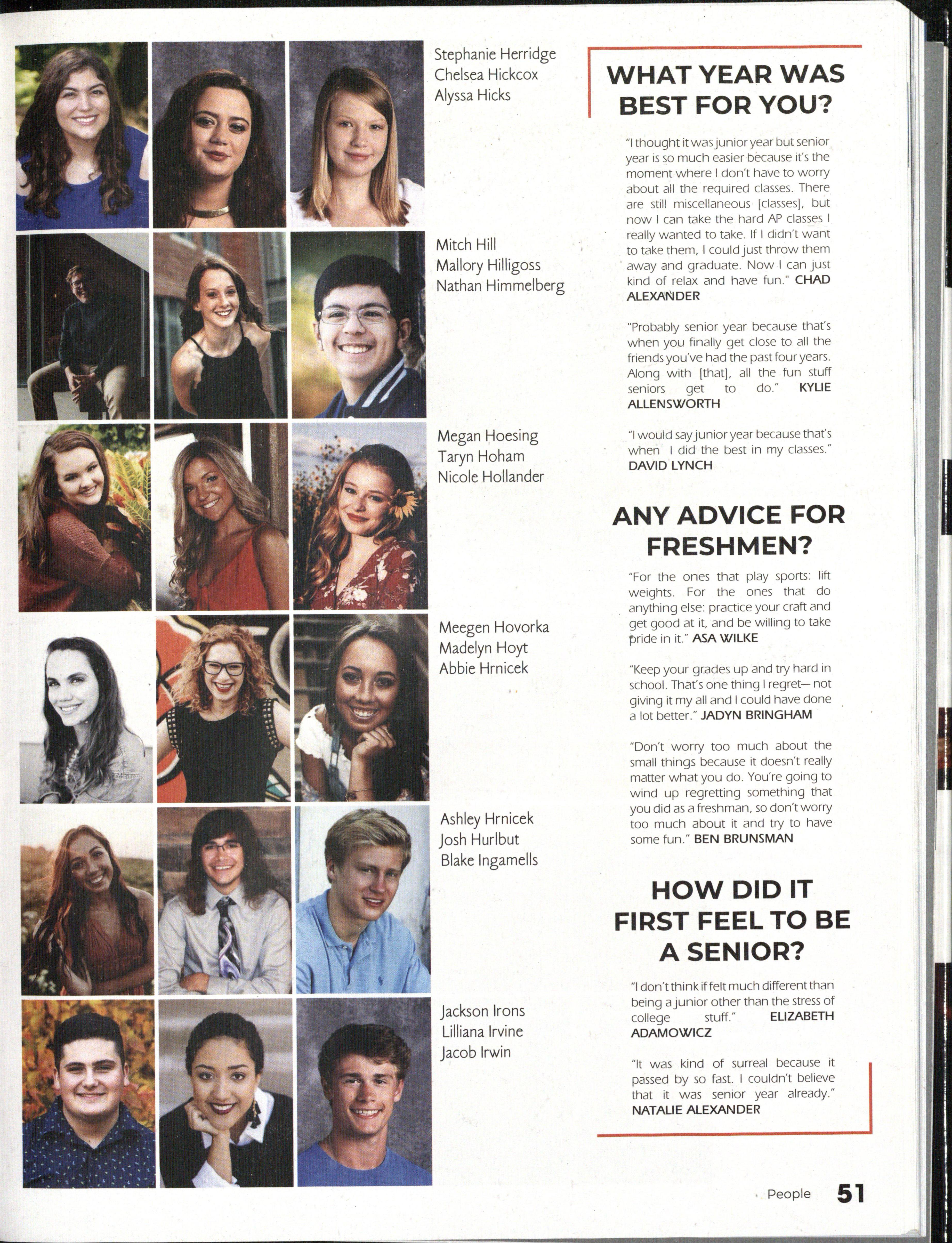 1 guess the we irdest thing about high school is that I thought it would be like a different experience. I thought people would be on their own, · or there all by themselves, but it is really a group. Like at basketball games everyone is together and is really supportive and I didn't know coming to high school would be [like that], from what you hear. But I was really surprised. This is such a great place."
