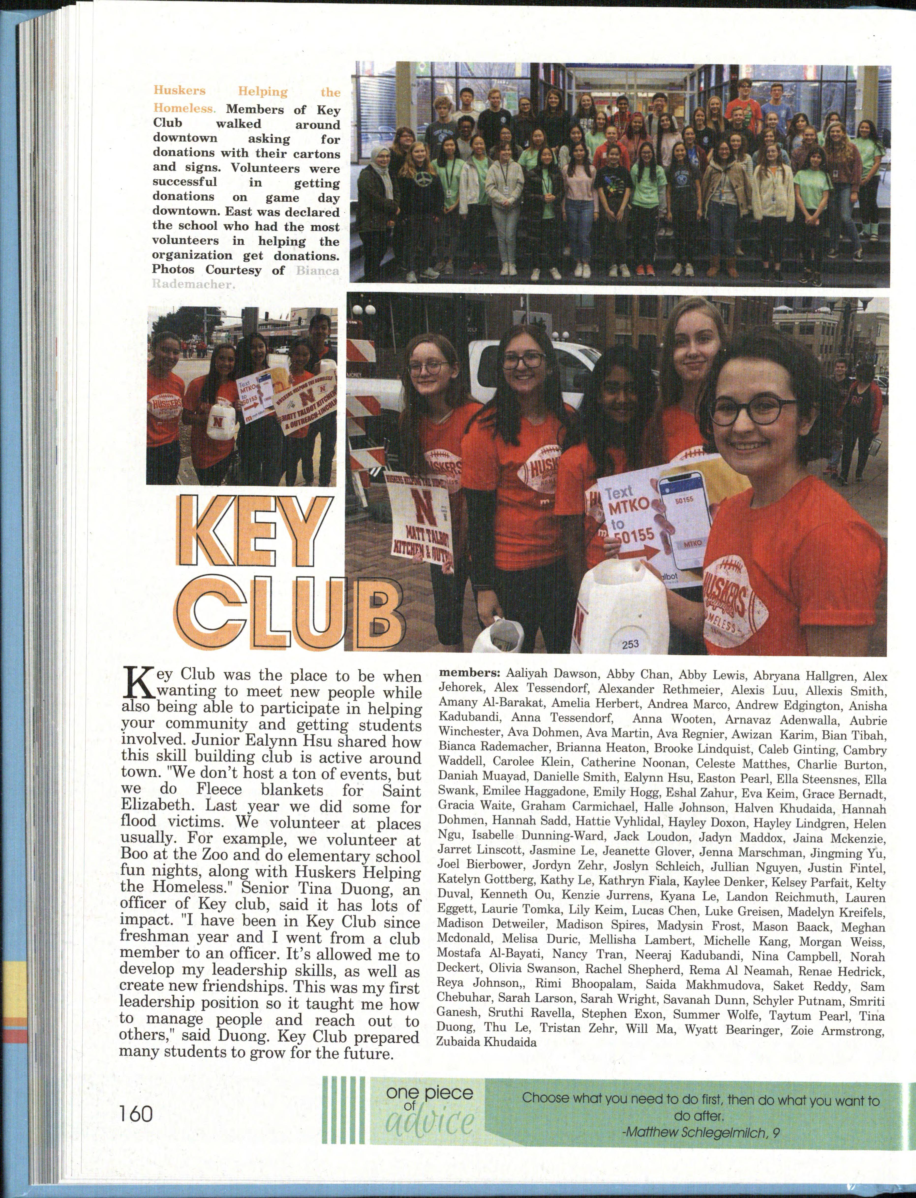 Kathy, thank you for being someone I could alway s count on to edit my mistakes, answer all of m y questions and being someone I could always vent to . Faith, thank you for editing almost every story and fo r bringing positivity to our classroom every day. You r "Good morning, Beautifuls!" will be missed. Sarah , thank you for always being my toughest critic an d always being honest with me. Your suggestions helpe d me and other staffers become more confident in ou r work and push us to make everything even better tha n it already was. Camdynn, thank you for sharing you r amazing photography skills and ideas with our clas s . They really helped make the book more appealing t the eye.