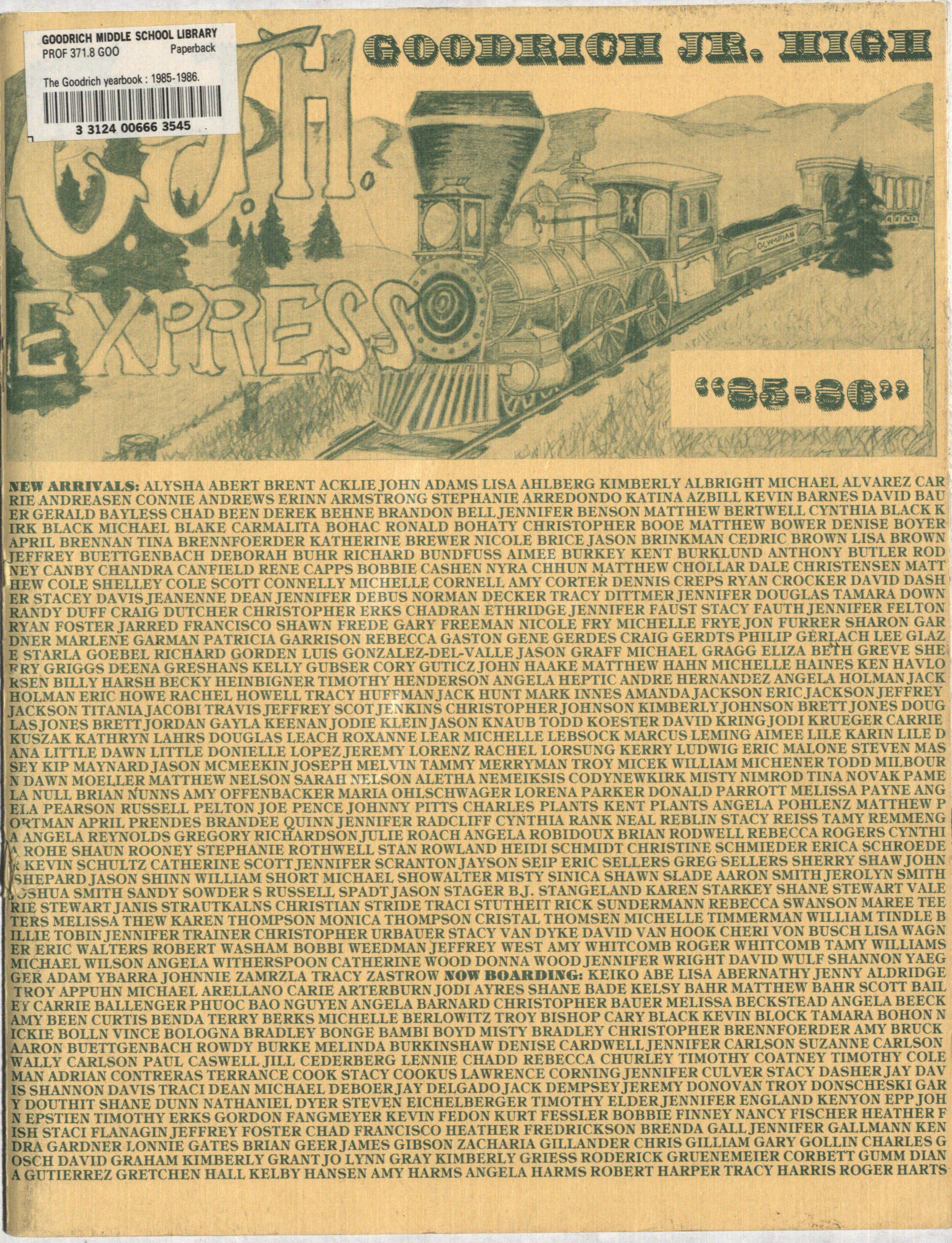 THE GOODRICH JUNIOR HIGH YEARBOOK, 1986 DATE DUE
