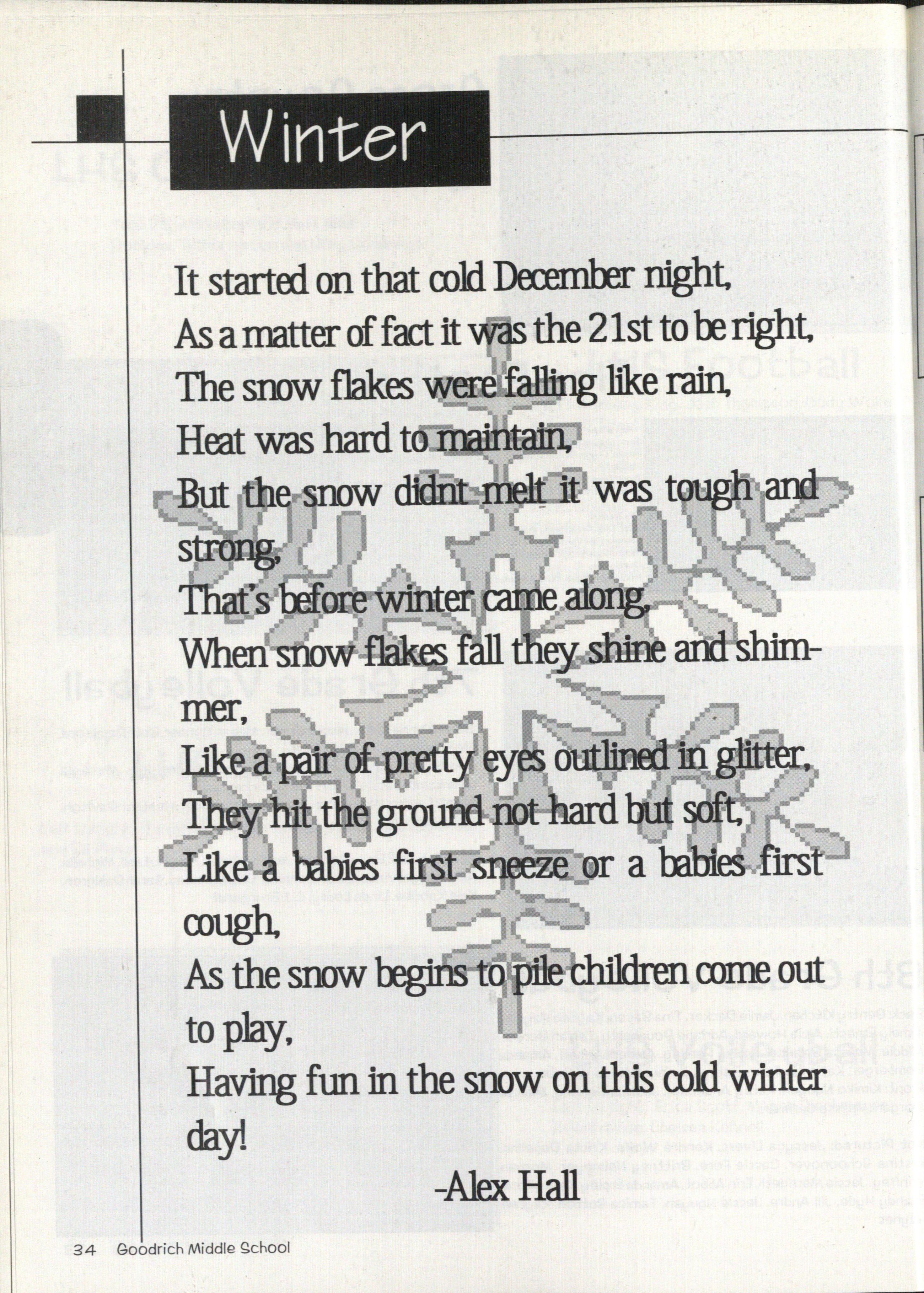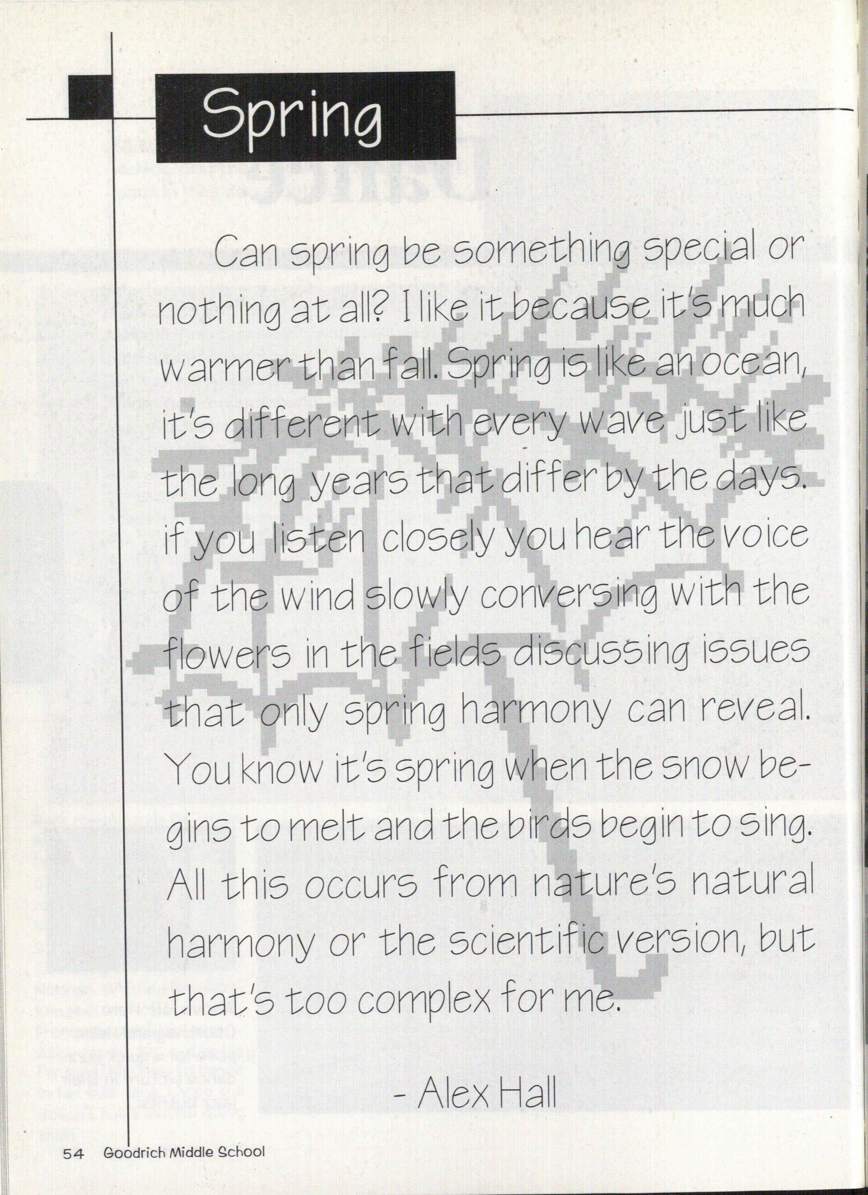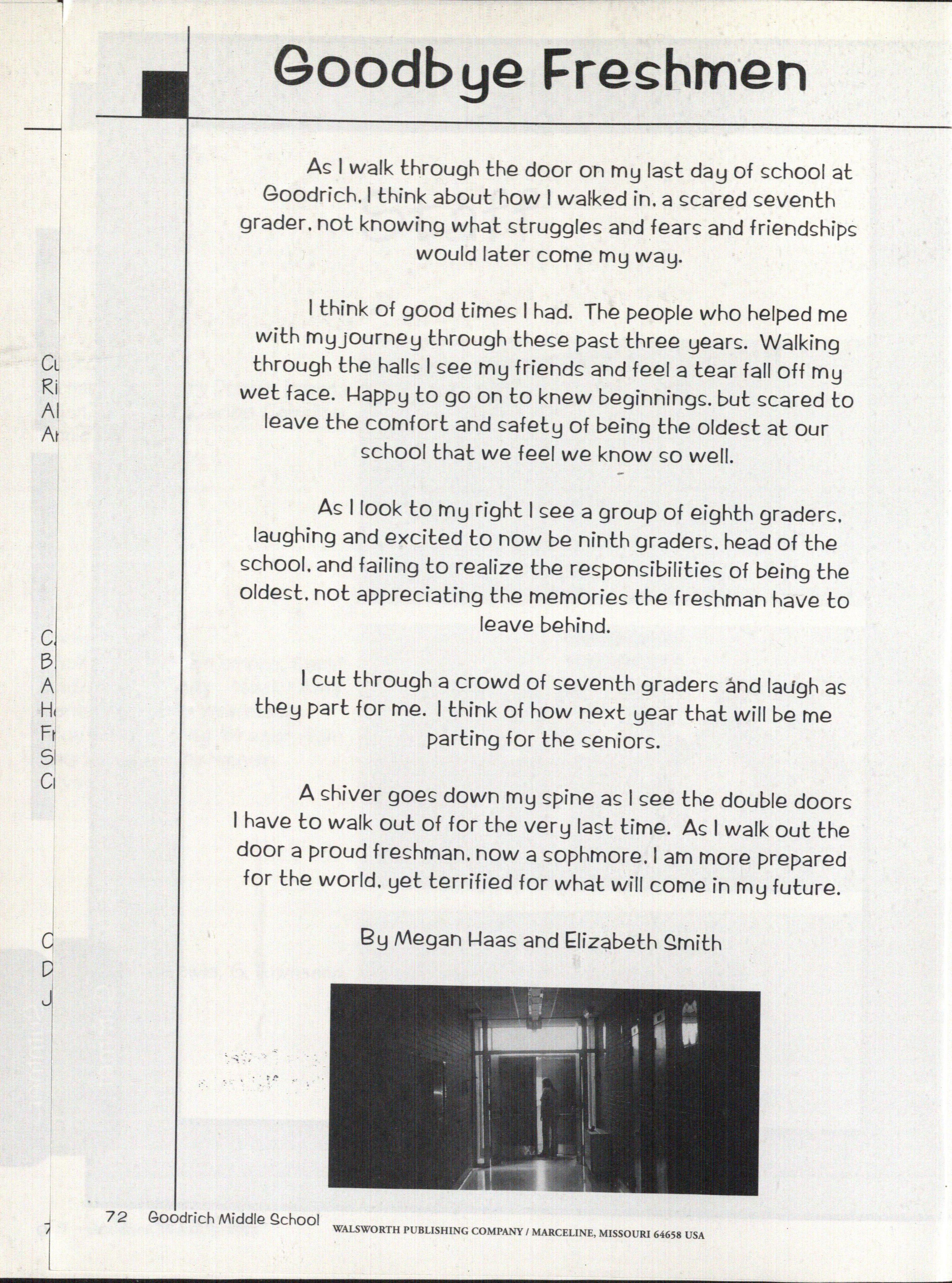 Ac;. I walk through the door on tn y la<:.t day of c;.chool at Goodrich. I think about how I wafked in. a <:.cared c;.eventh grader. not knowing what c;.trugglec;. and fear<:. and friend<:.hips; would later cotne tny way.