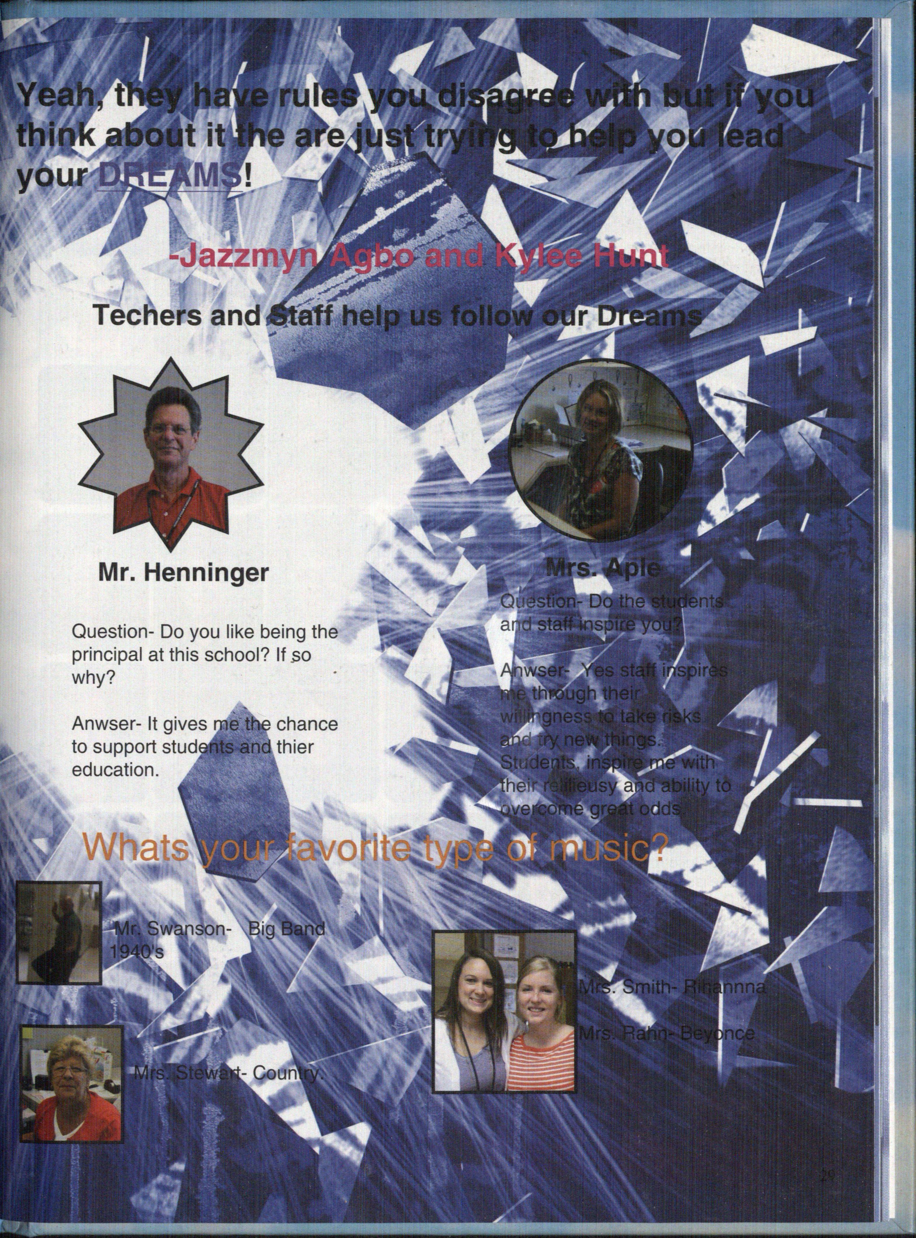 Why follow your dream when you can ead the ! Was it a good year for you? Whether you are in 6th, 7th, or 8th grade, did you achieve your dreams? If not its okay, because you are still young and you still have plenty of ears ahead of you to achieve your dream . O t U ! M