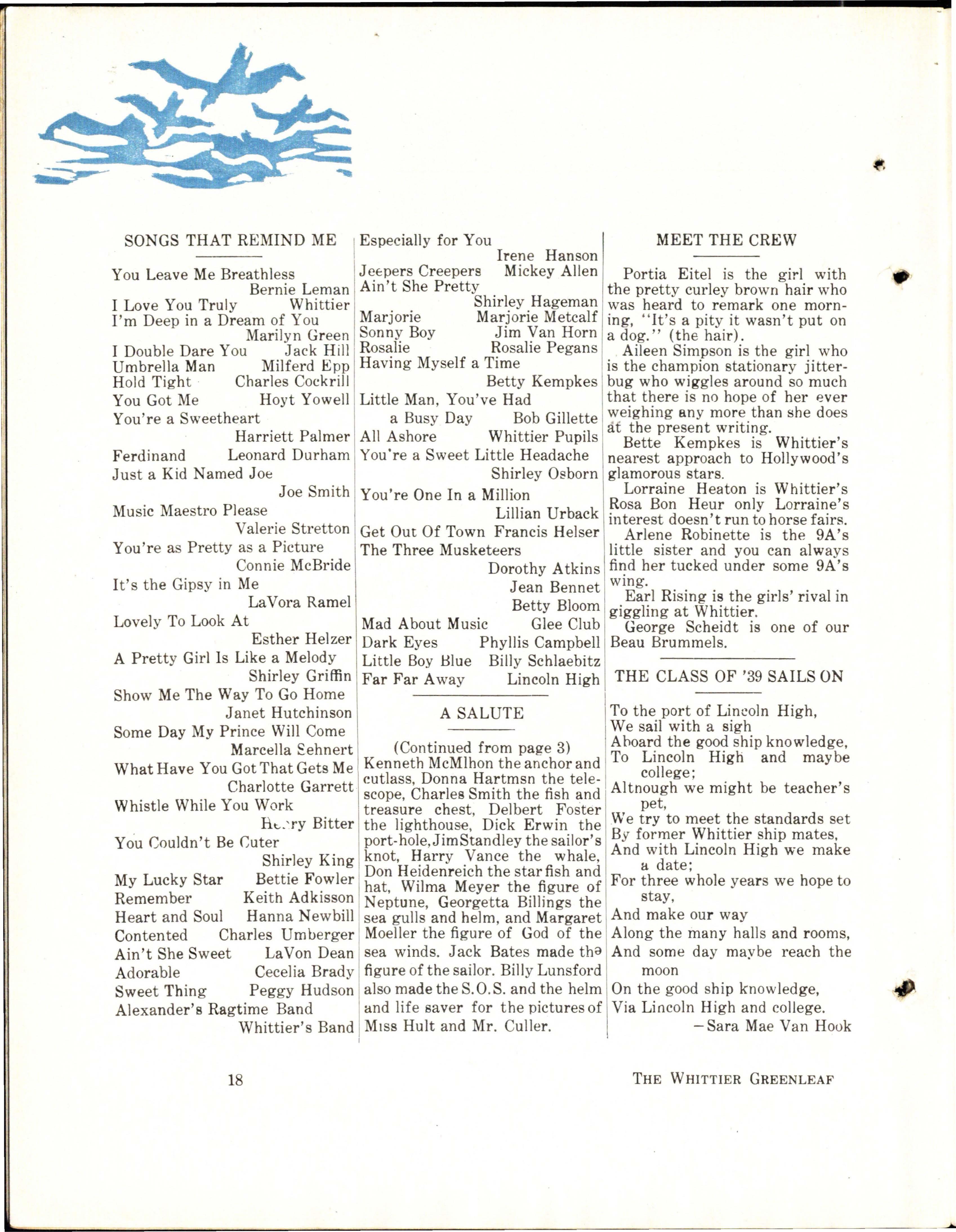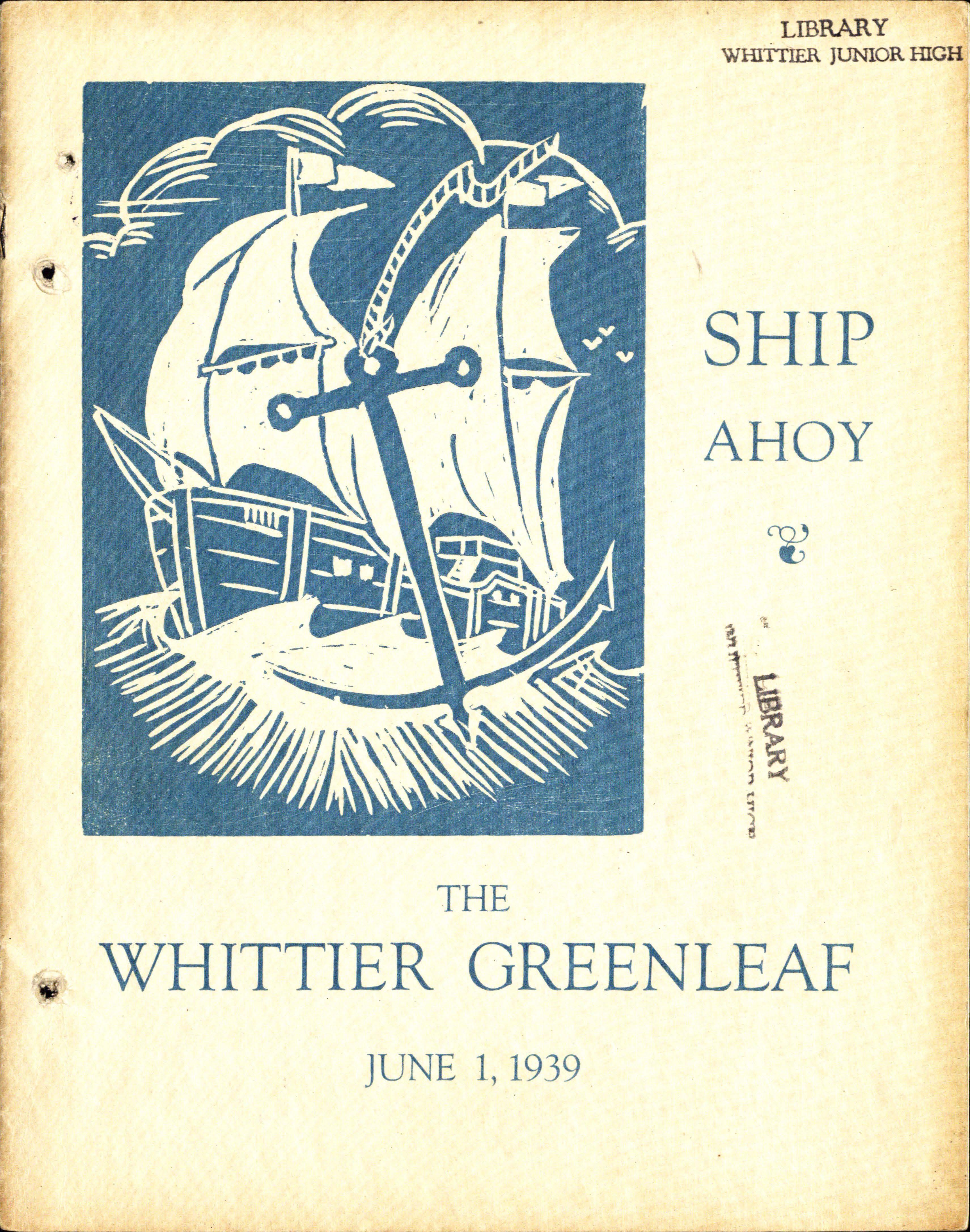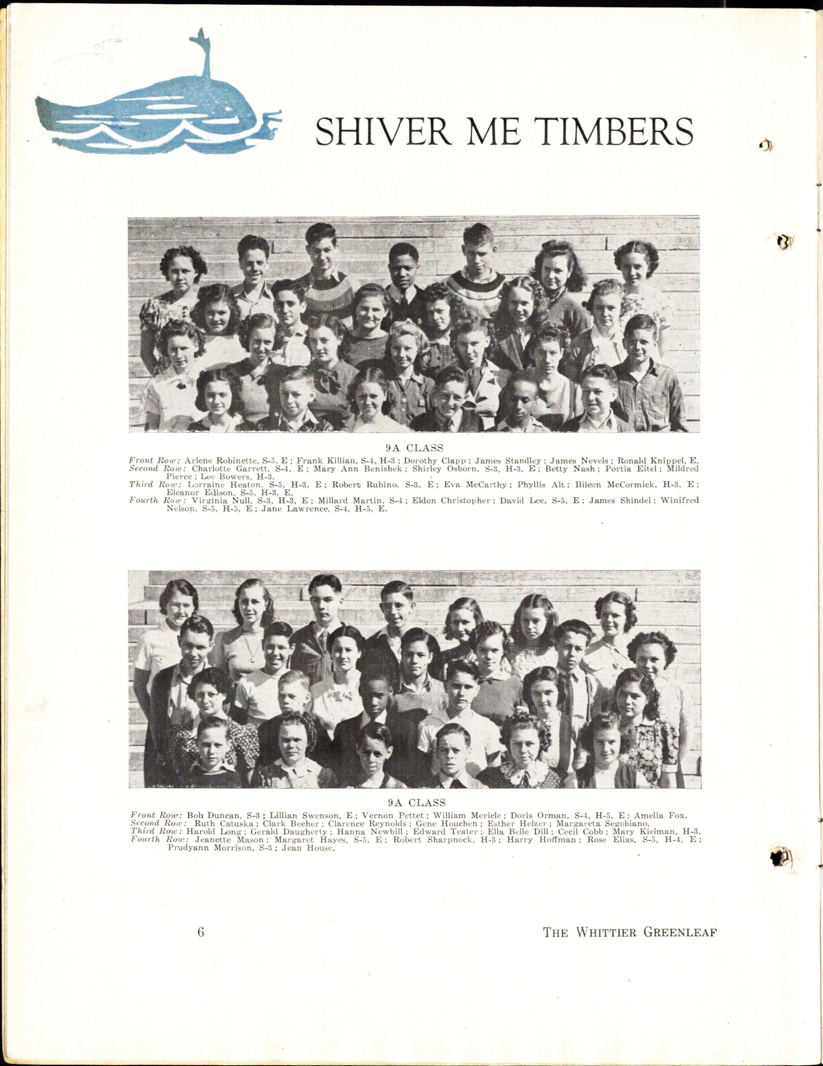 We, the Greenleaf Class; extend our dedicatory wishes to the 9A's of Whittier and hope that through the years of rough sailing you will cherish this paper as a memento of your happy, carefree days at this port of learning.