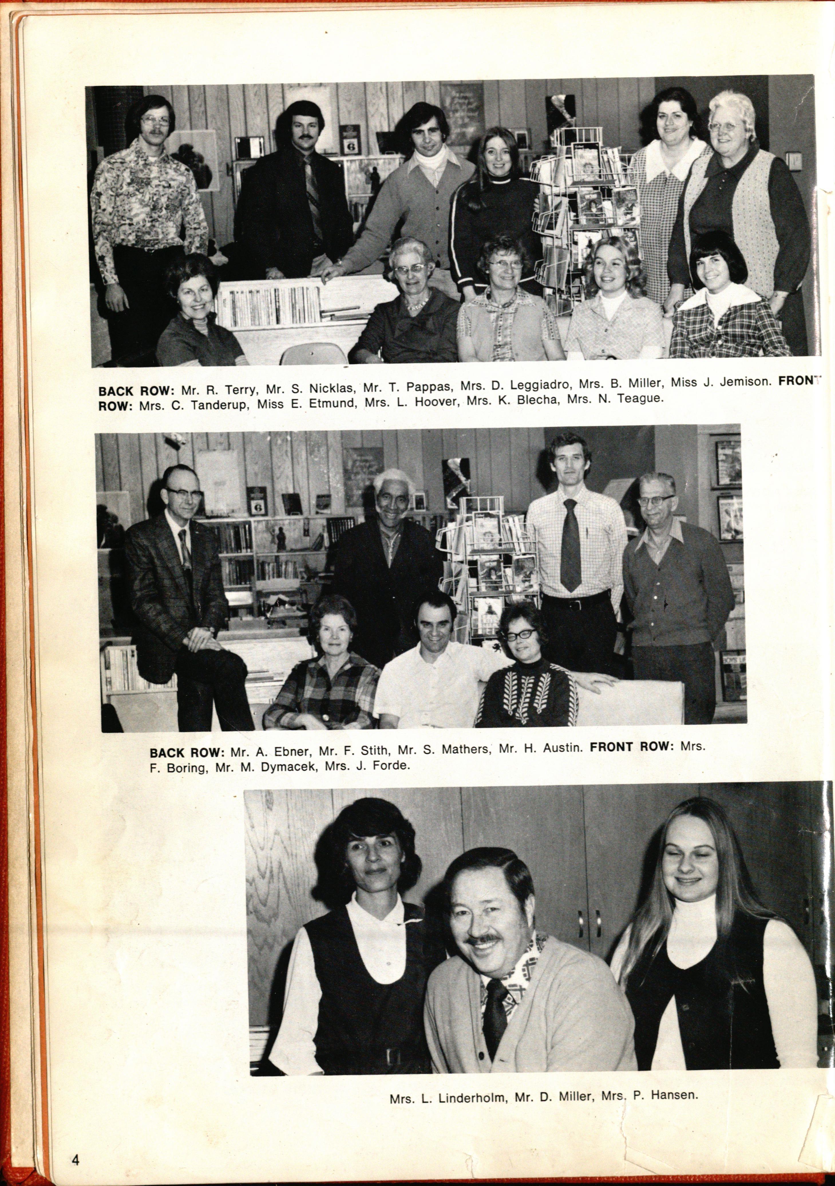 BACK ROW: Mr. R. Ehlers, Mr G Wall , Mr. E. Ch il dress , Mr J Novotny , Mrs. M. Blank , Mrs. D. Peterson , Miss M. J. Hurley, Miss G. Scherer FRONT ROW: Mrs J. Johnson , Mrs. R. Hansen , Mrs. S Talcott , Mrs. R. Boehmer , Mr D. Johnson, Miss D. Olsen.