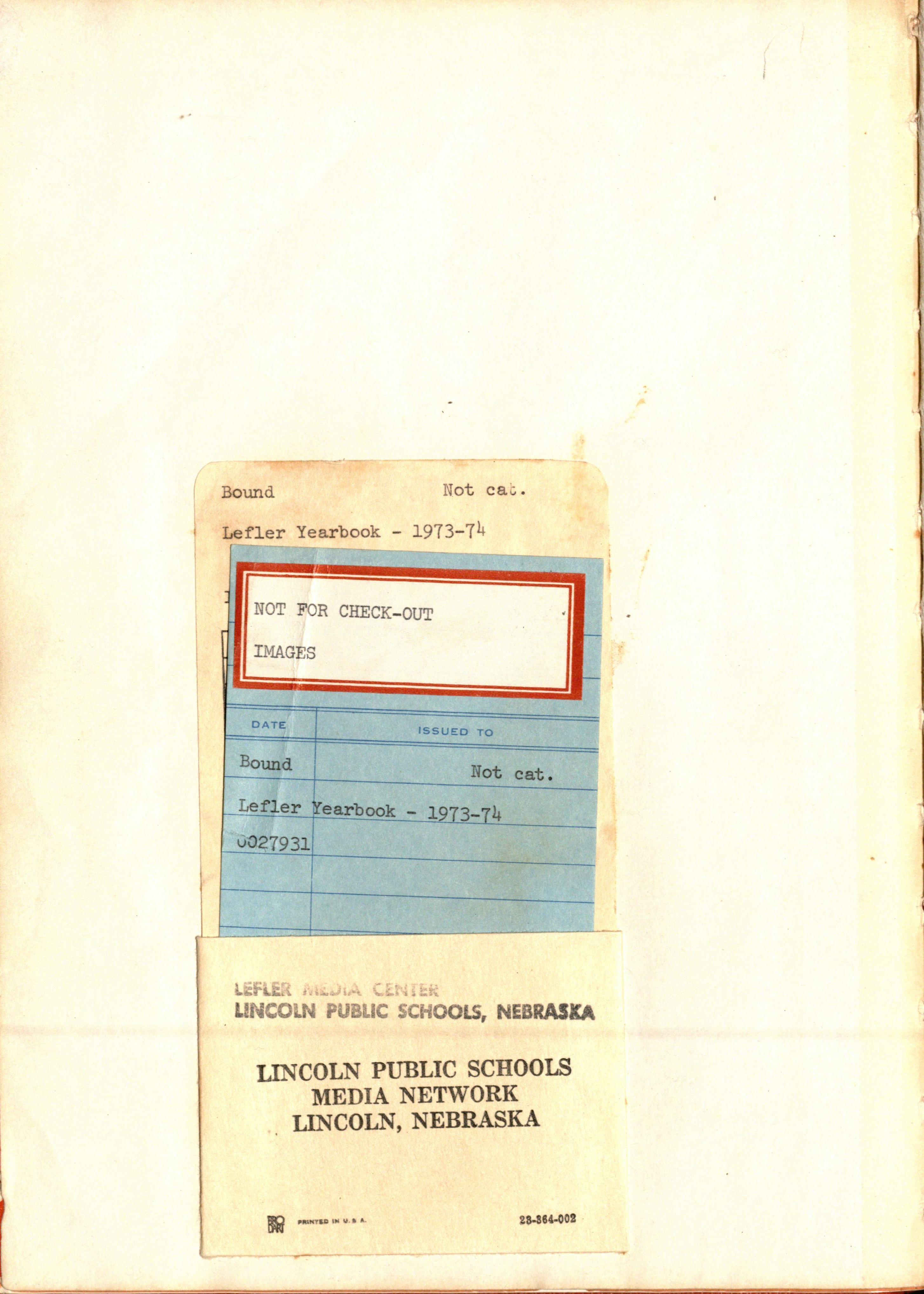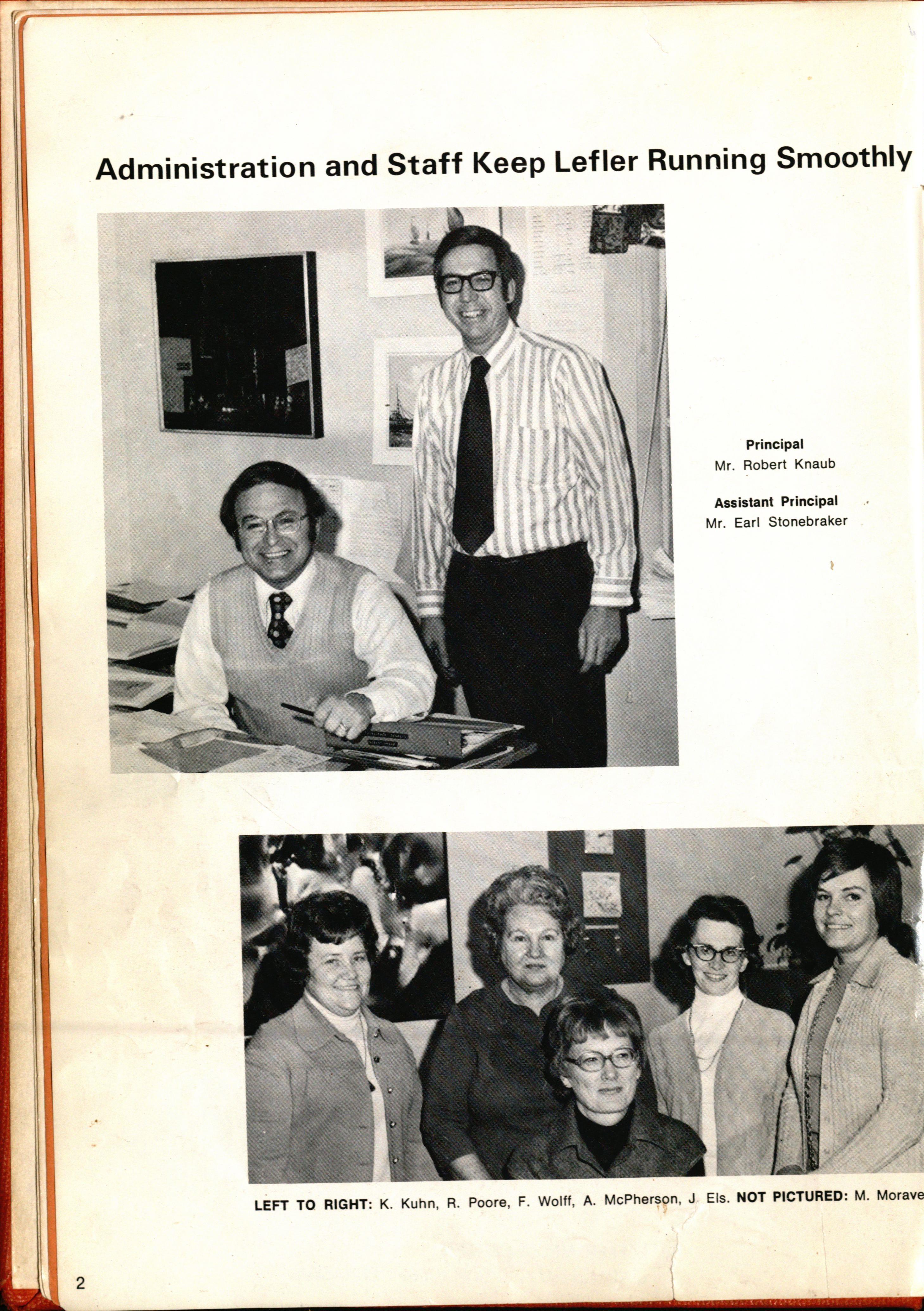 The Yearbook Staff would like to thank the following people who put a lot of time and effort into getting the ye arbook going. They are : the Lefler PTA, Mr. & Mrs. Virgil Parker, Mrs. Judy Johnson, Mrs. Marietta Blank , Mr. Dan T warling, Mrs. Barb DeMa rs, Mrs Adele Wohlers, and Mr. Robert Knaub. We would also like to thank Mr. Jerome Reho r and Mr. Roger Elrod , our photograpHers , and The Lincoln Yearbook Company , the printers.
